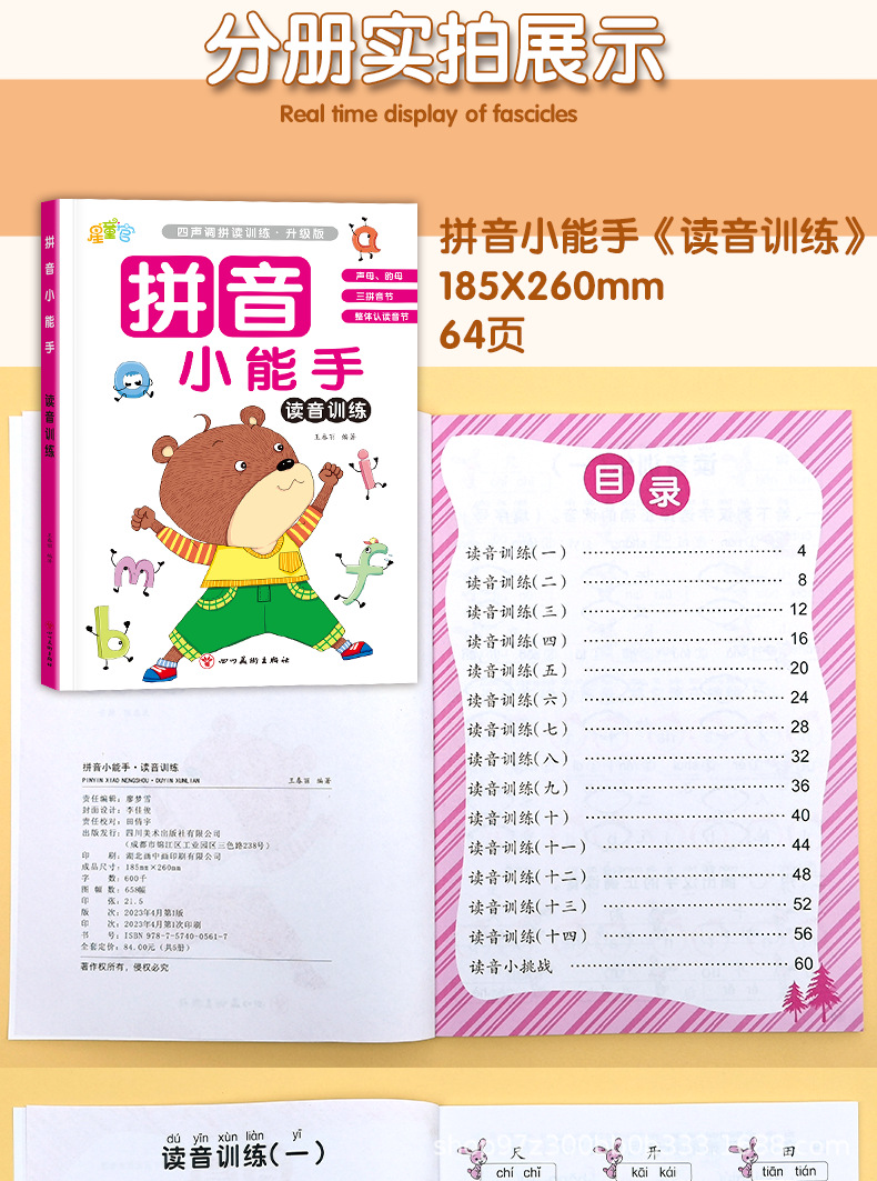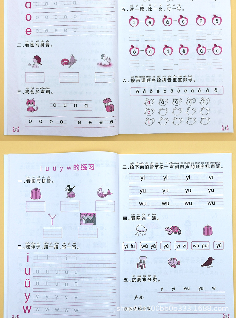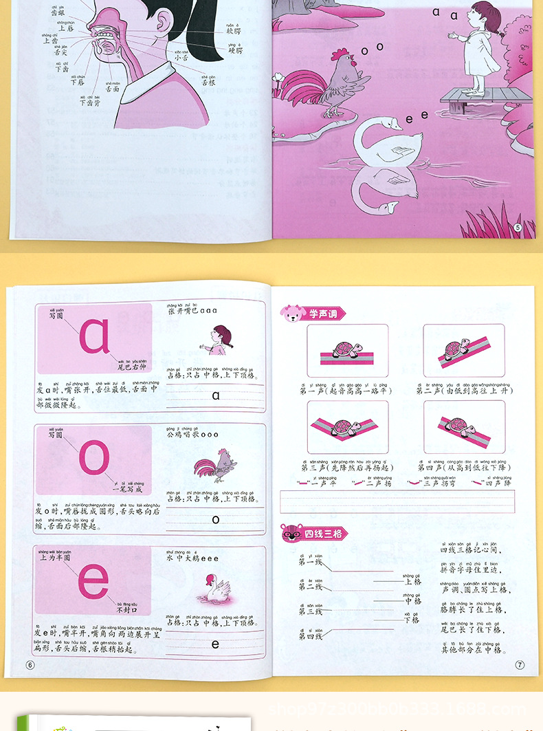 幼い時にピンインの特別練習帳を繋げて、中国語をつづり合わせて読みます。