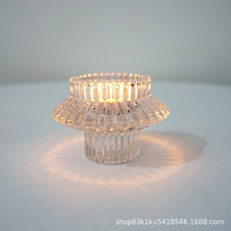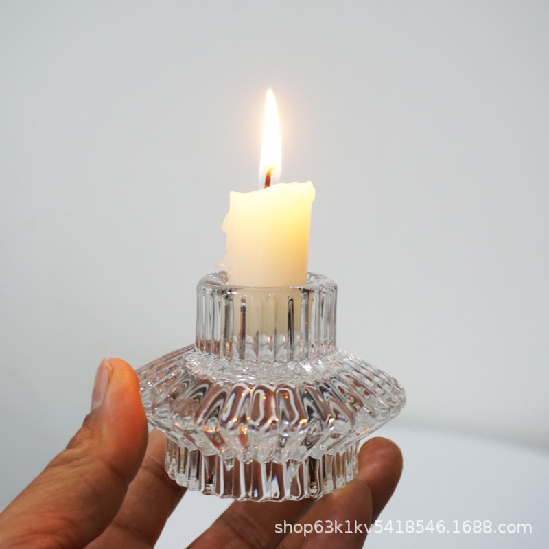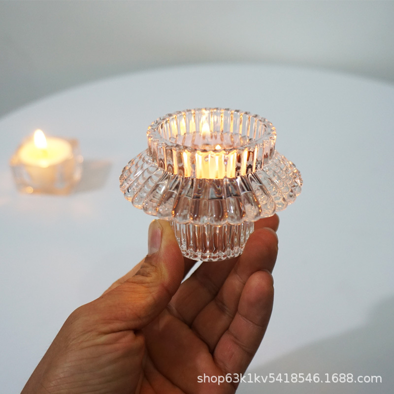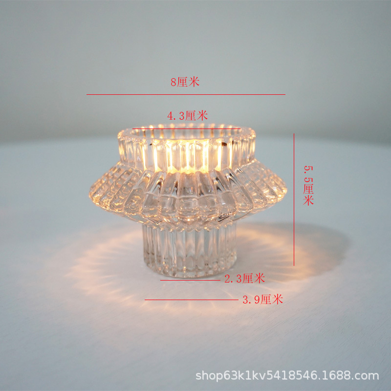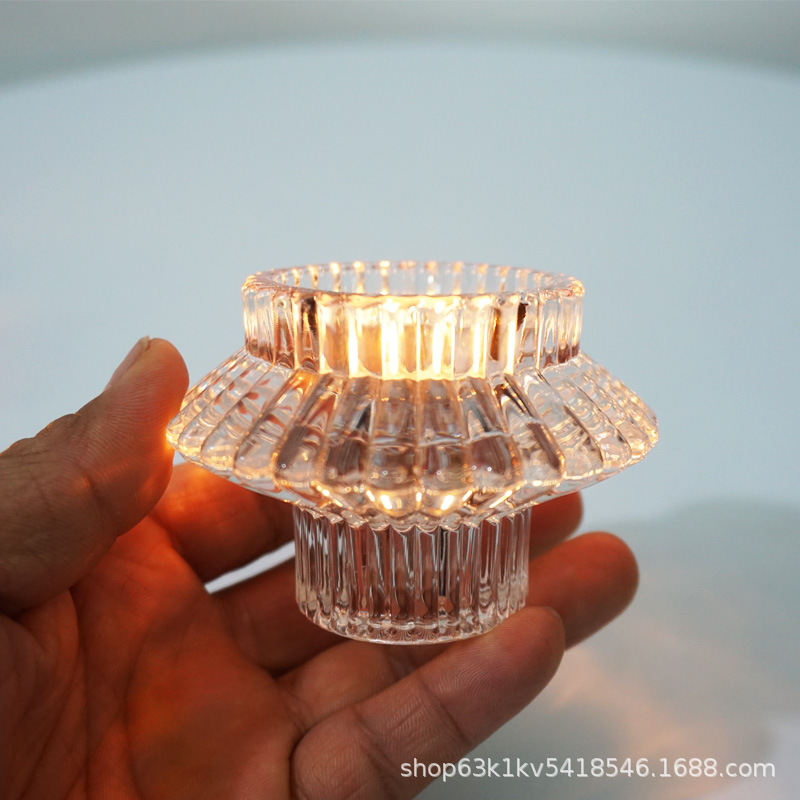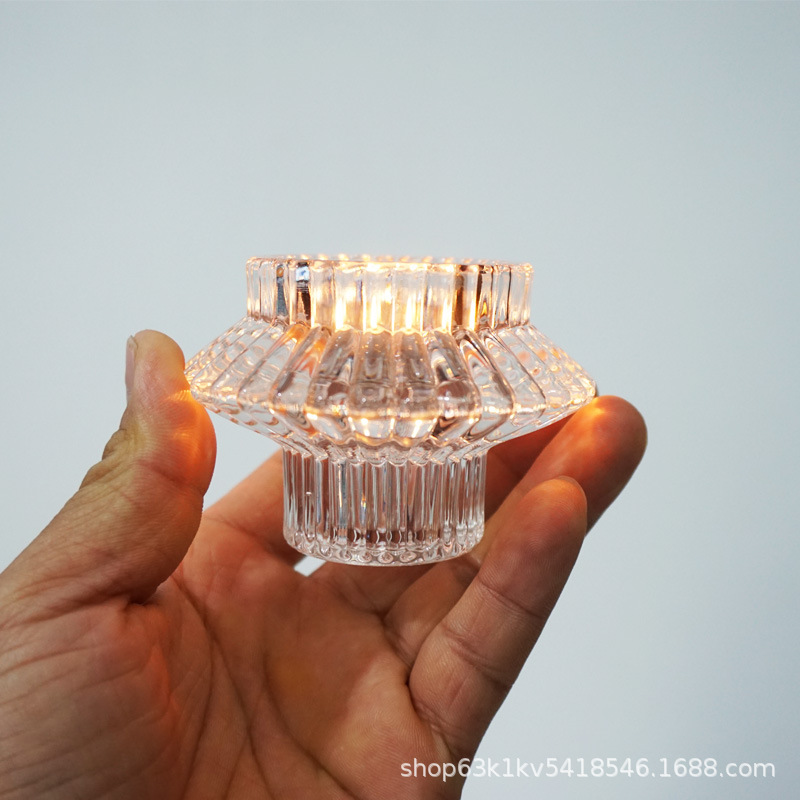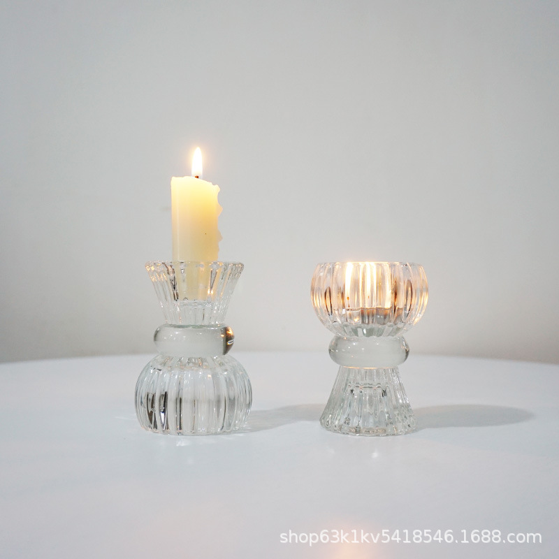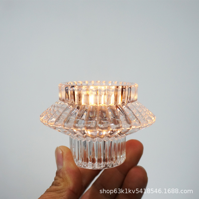 卸売り透明水晶縦紋両用ガラスろうそく台レストラン結婚祝い装飾テーブルの置物燭台