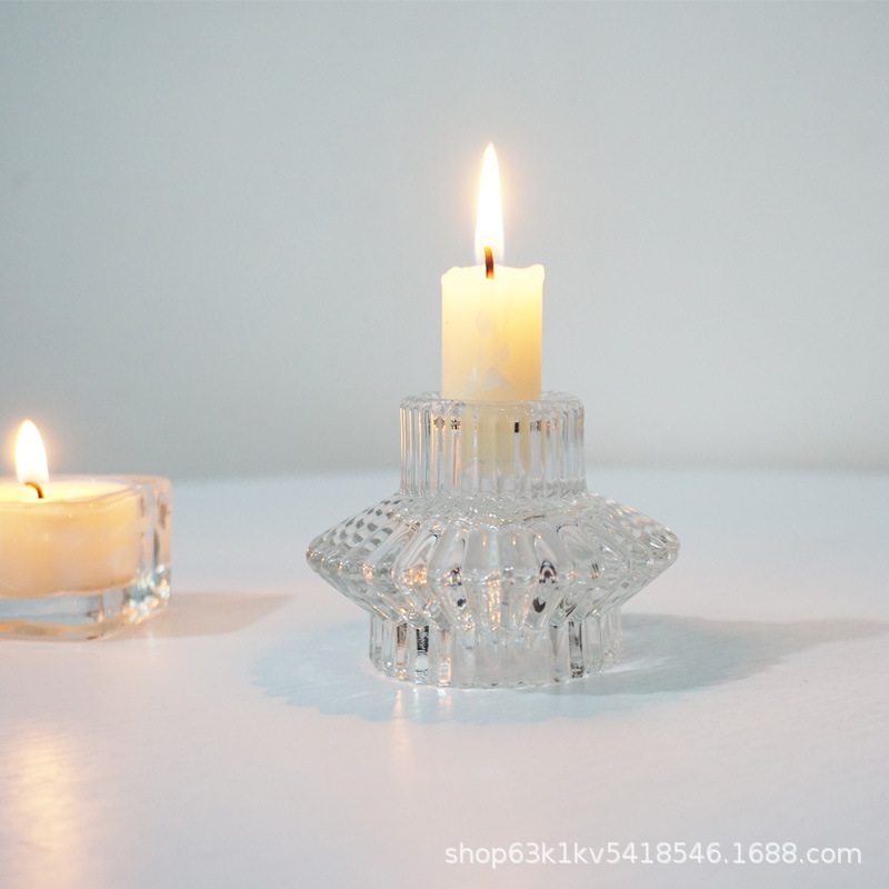 卸売り透明高足ガラス燭台キャンドルディナー香薫ろうそくクリスマス蝋台ダイヤモンド棒蝋燭台