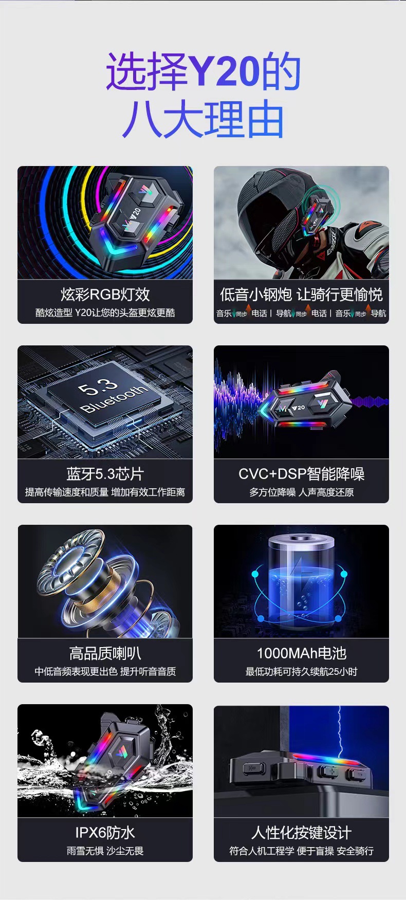 Y15头盔蓝牙耳机外置一体IPX6防水3D立体环绕音HiFi音质超长续航
