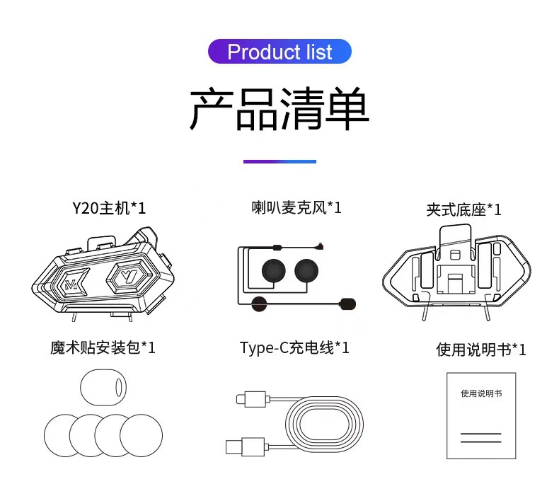 Y20ヘルメット用Bluetoothヘッドセット ヘルメットイヤホン バイク用Bluetoothヘッドセット