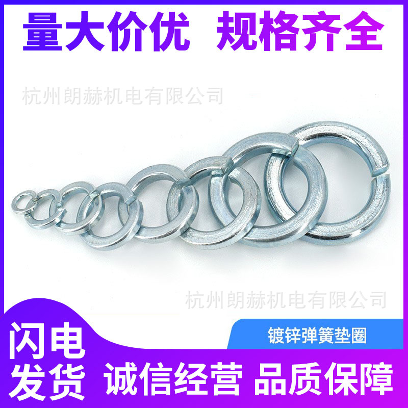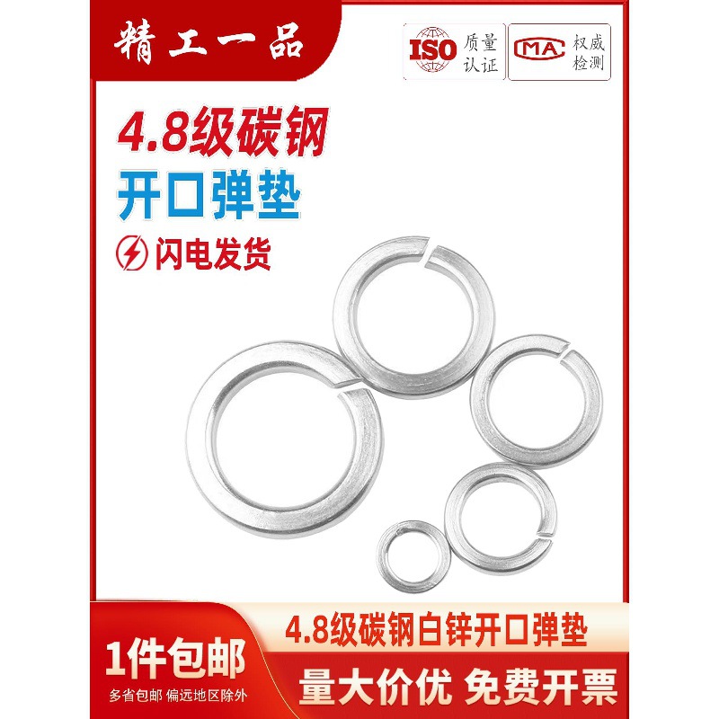 4.8级碳钢镀白锌弹簧垫片弹垫镀锌垫圈弹性螺丝垫圈开口垫片