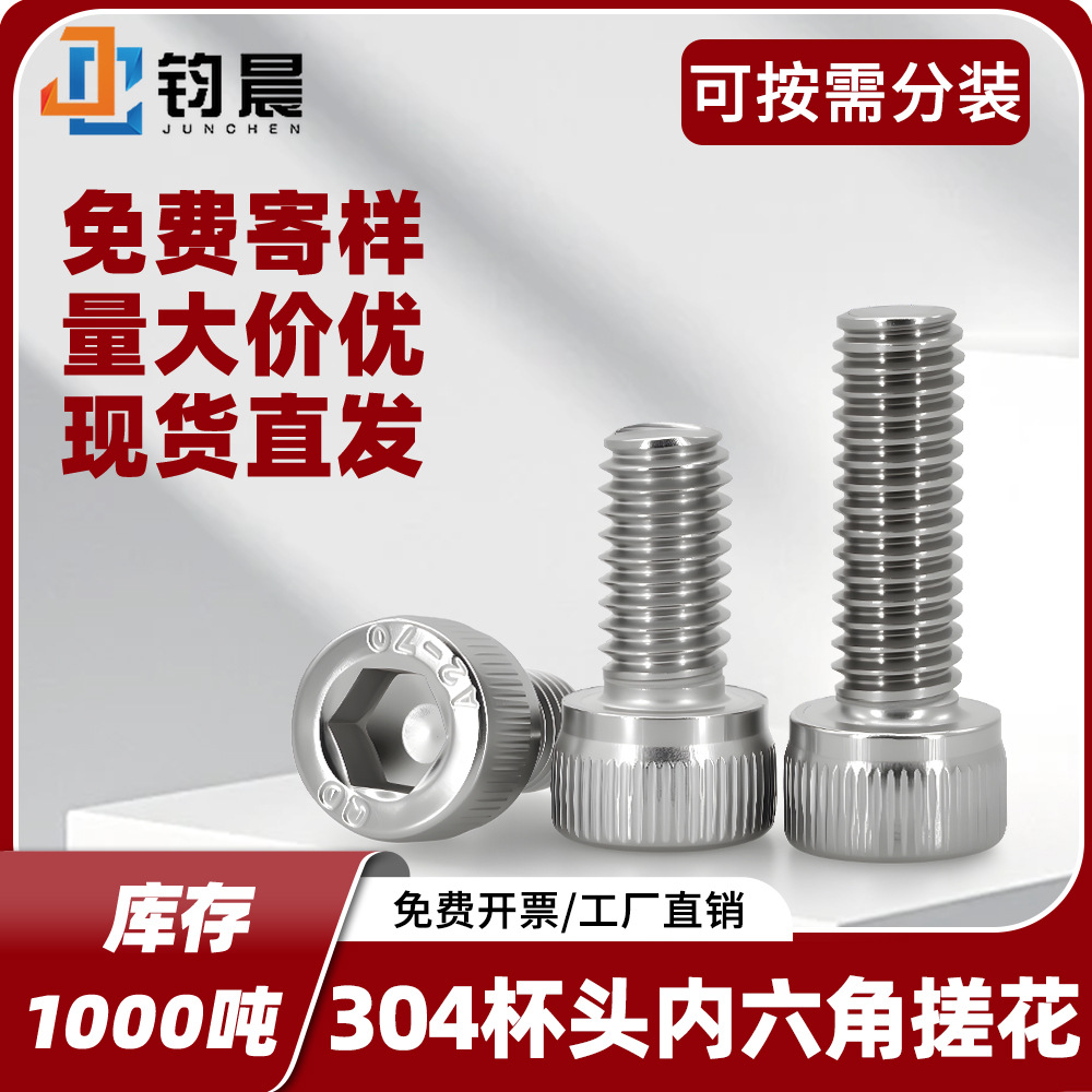 304ステンレス鋼六角穴付きネジ 円筒頭ローレット加工六角穴付きカップヘッドボルトネジ DIN912