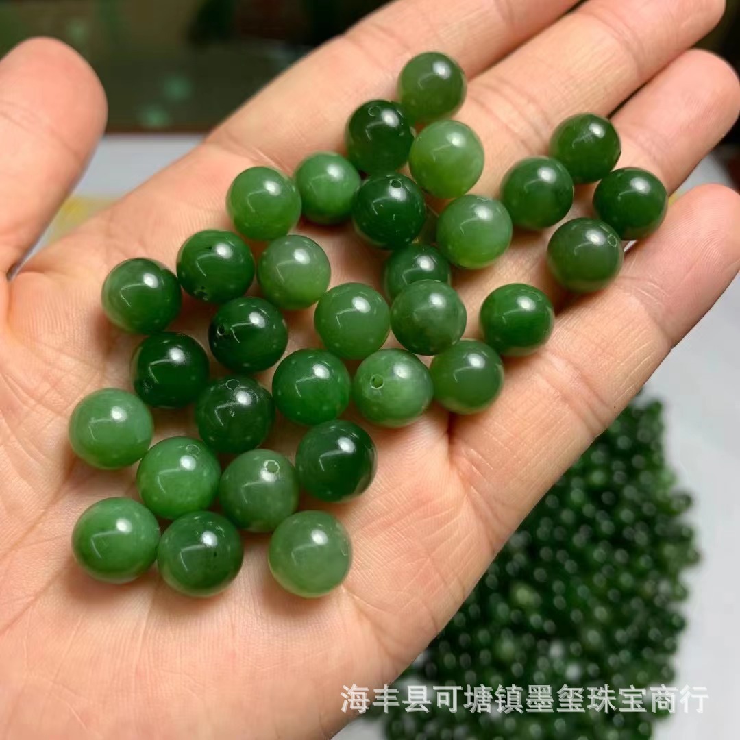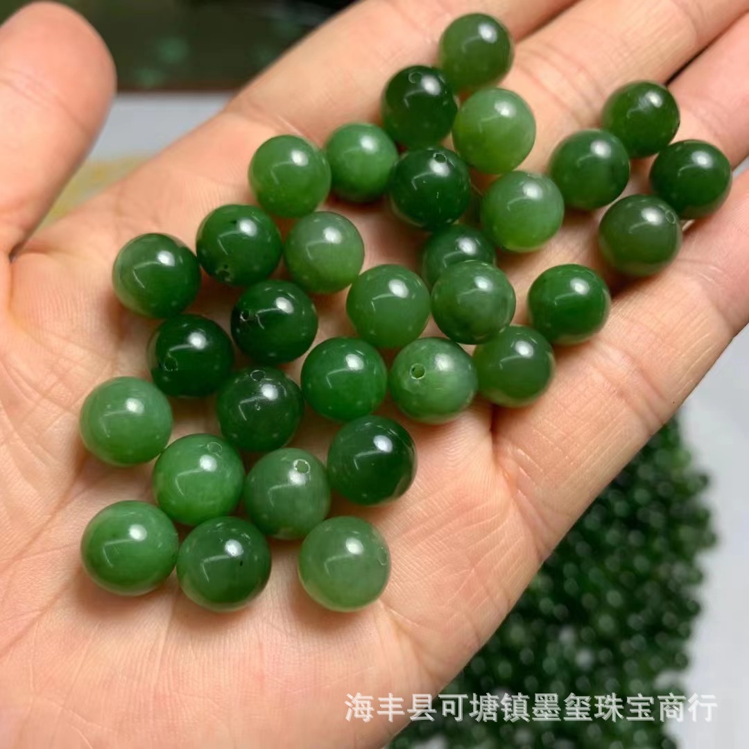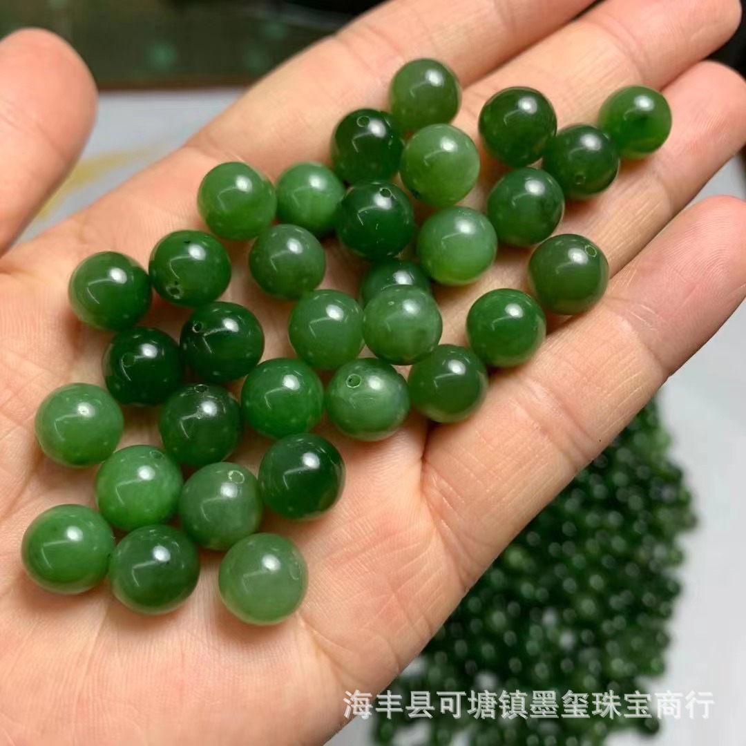 和田碧玉9.5m半穴玉ほうれん草緑ほぼ無黒点diy散珠ブレスレットネックレス部品卸売り工場
