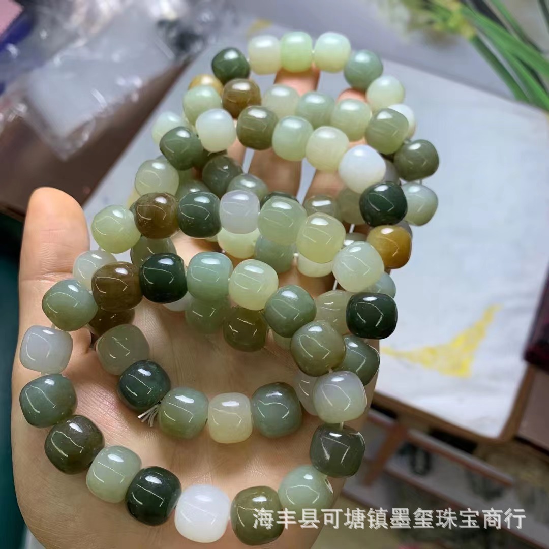 卸売ターコイズ細粒桶珠ブレスレットDIY仏珠天然新疆和田玉青玉古式玉ブレスレット