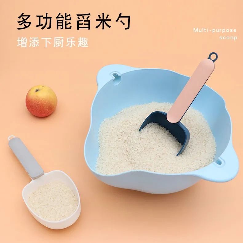 キッチン創意小道具家庭用シンプルな色にぶつかって米スプーンをすくっています。