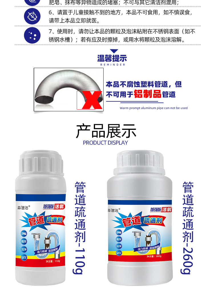 米貝徳強力配管疎通剤下水道疎通剤便器厨房トイレ閉塞粒子疎通剤