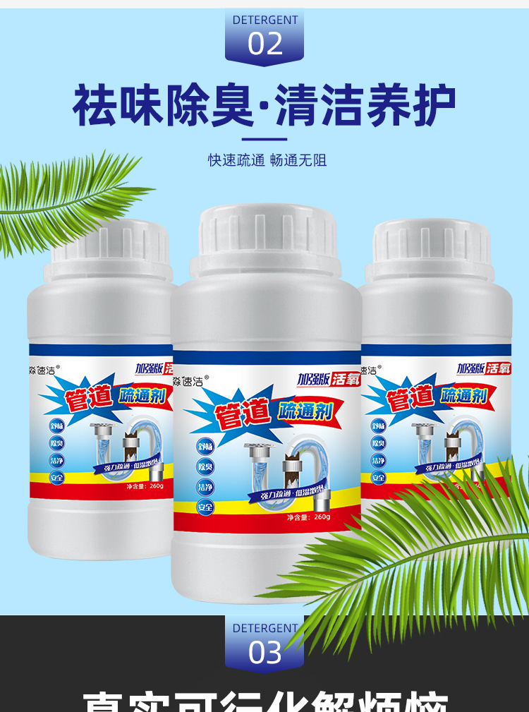 管道疏通3瓶装剂溶解堵塞通渠粉下水道疏通剂马桶厕所厨房疏通剂