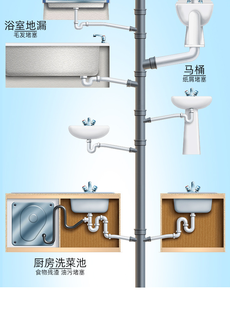 家庭用下水道洗浄パイプ浚渫剤トイレトイレ洗浄キッチン浴室食器洗い場床排水管