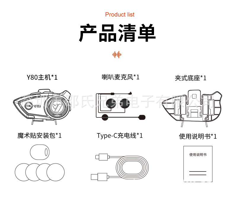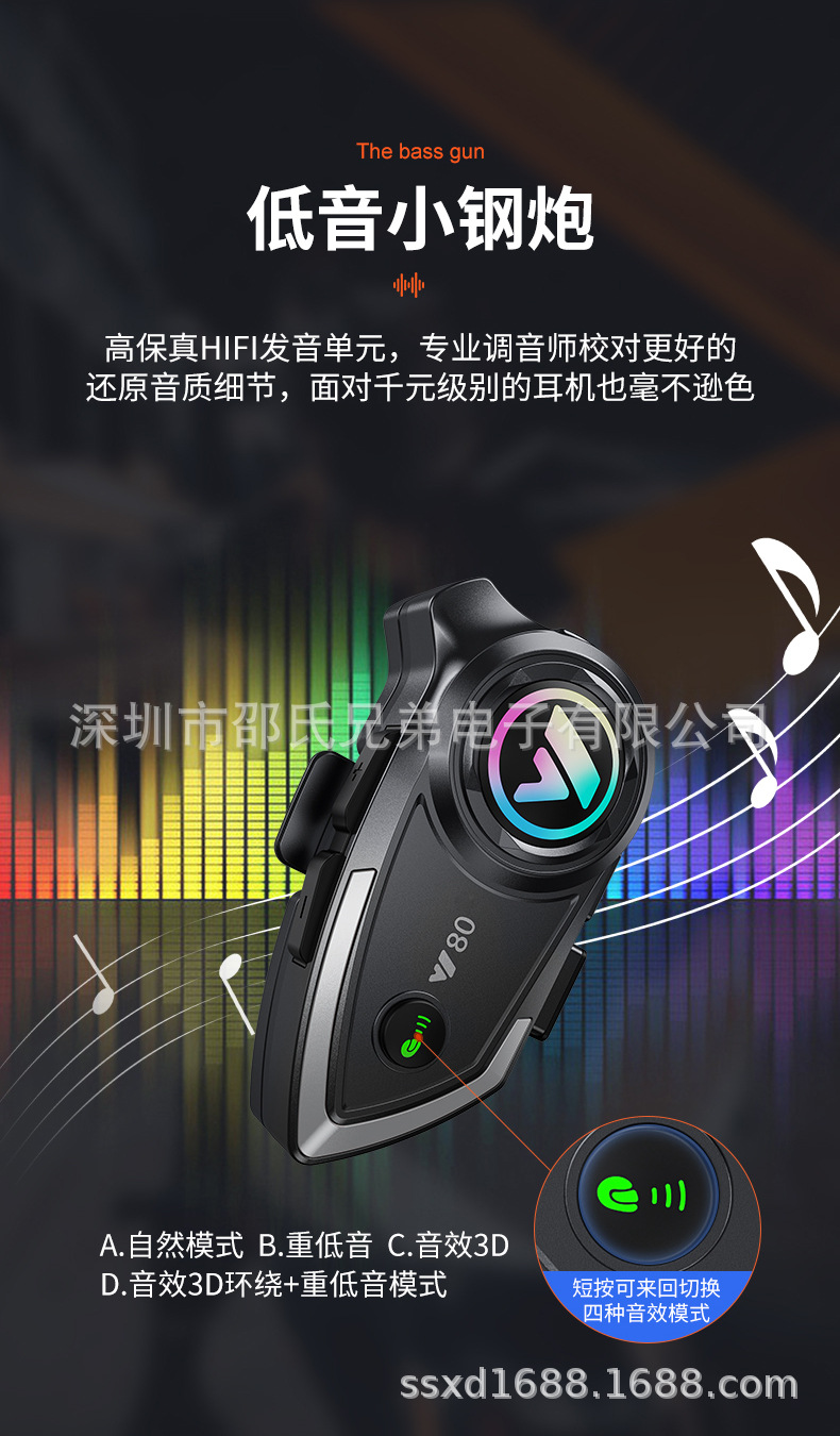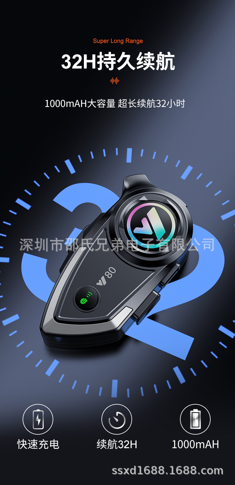 Y80ヘルメットブルートゥースイヤホンEQ効果音重低音防水防塵オートバイヘルメットヘッドフォン源工場