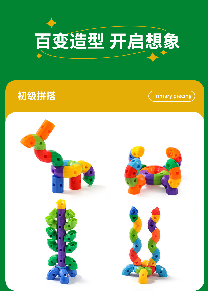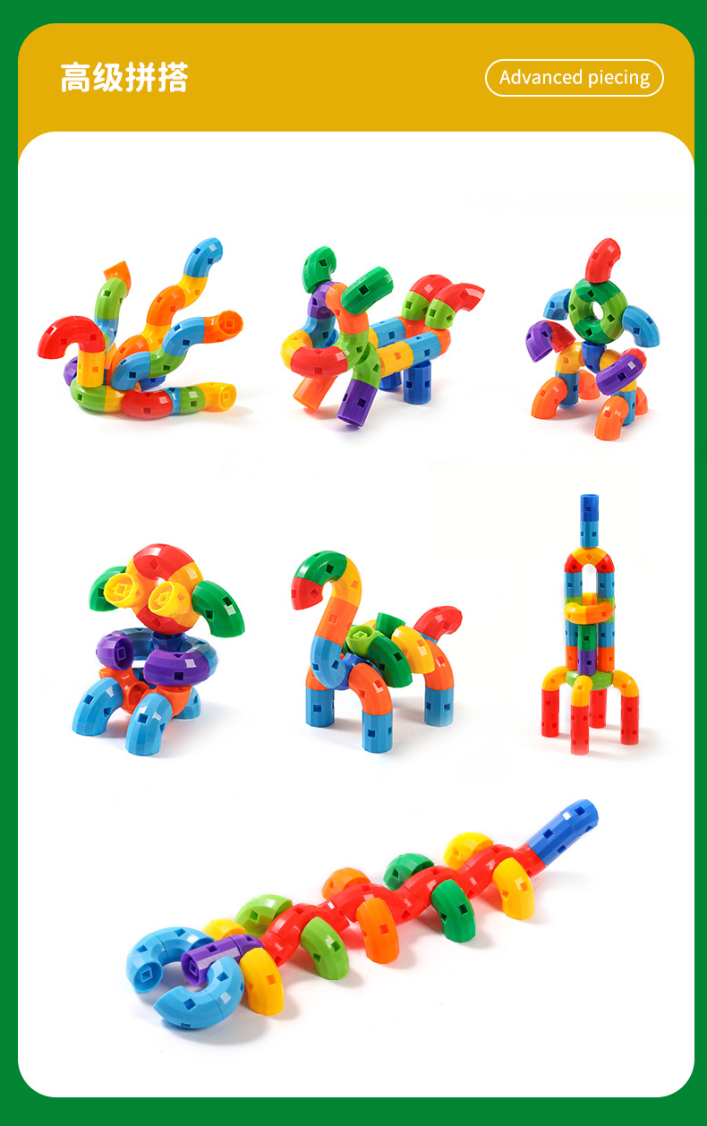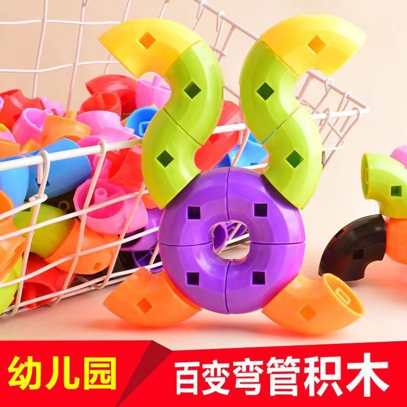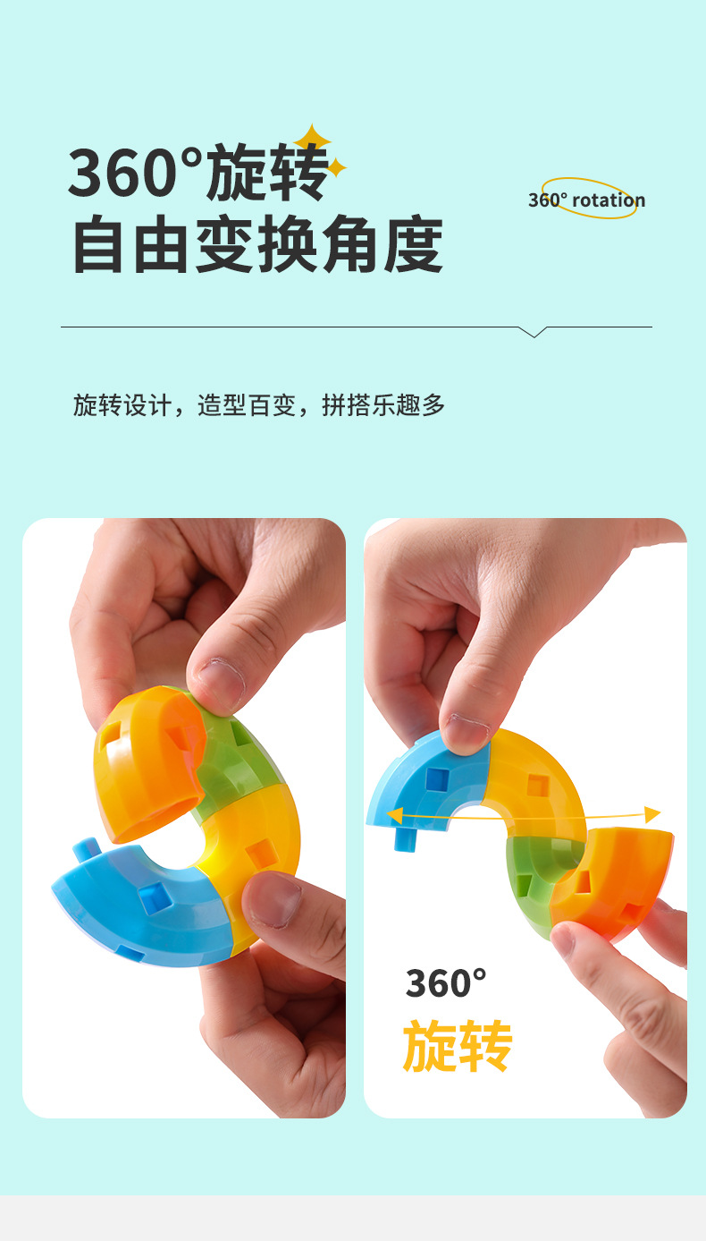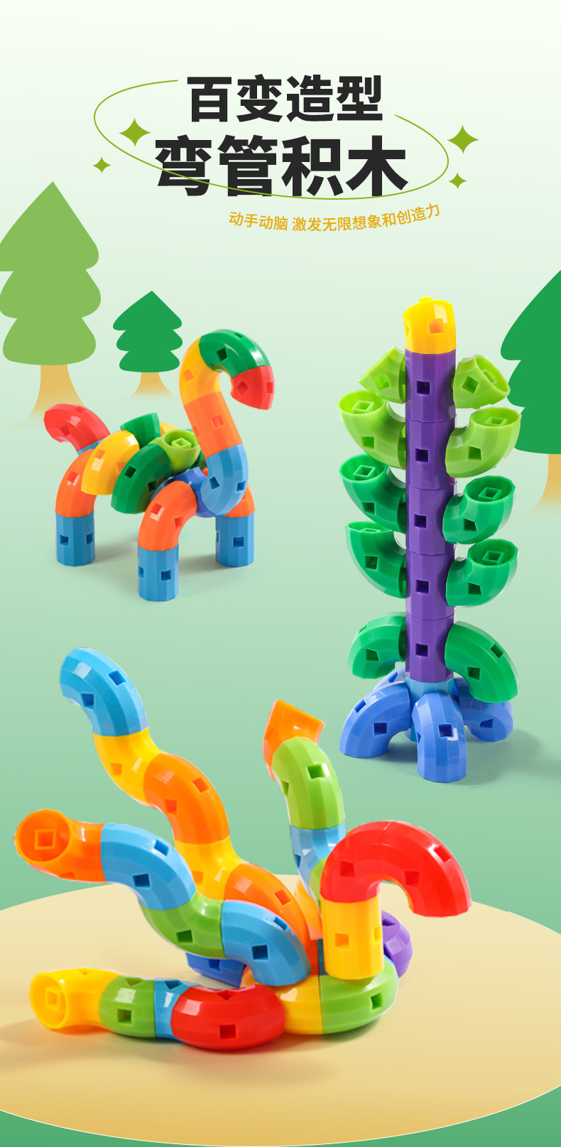 新款儿童百变旋转弯管积木3-6岁男女孩塑料拼插管道桌面益智玩具