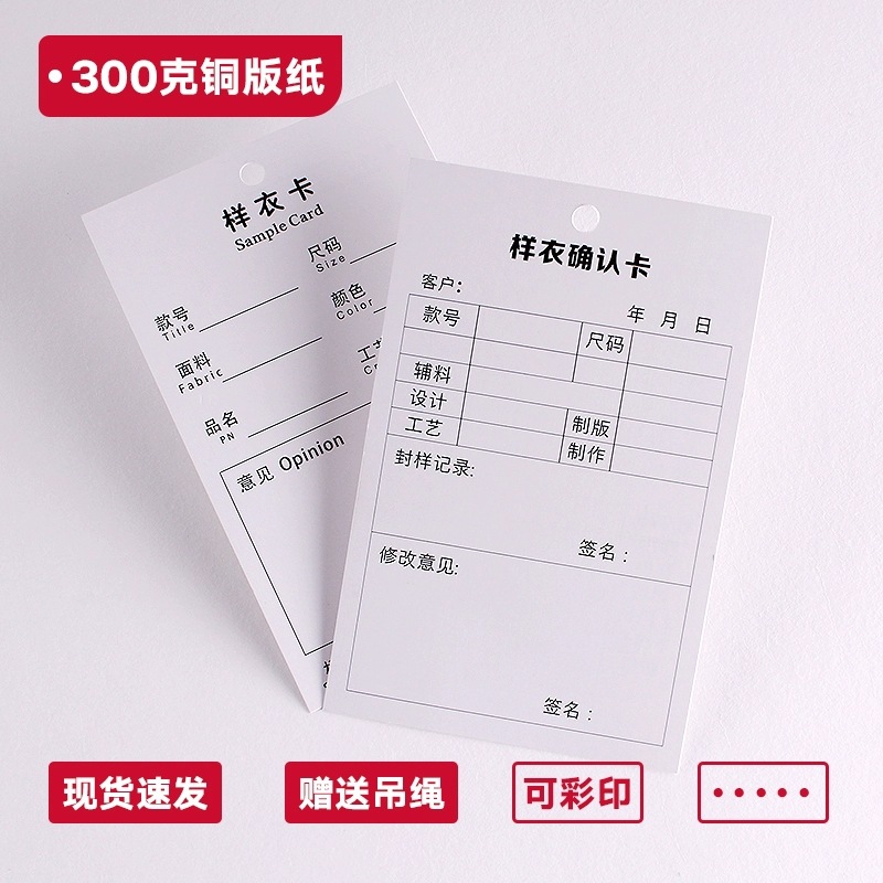 印刷紙カードサンプル服カード服装工場サンプル服ロットカード吊りカード倉庫空白吊りカードプロセスカード