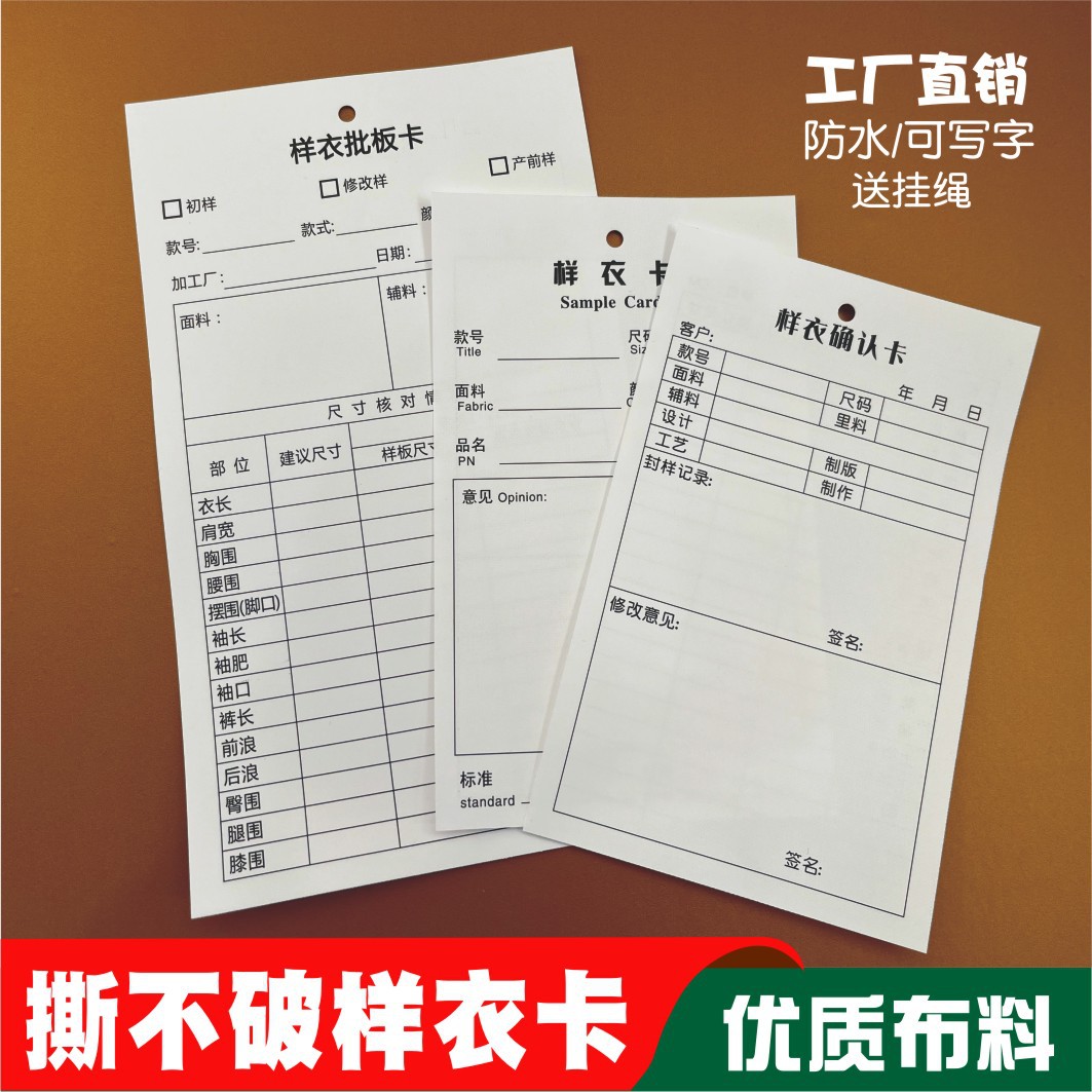 服装サンプルカード確認カードロットカード現物サンプルカード生産服装プロセスカードタグカスタマイズ