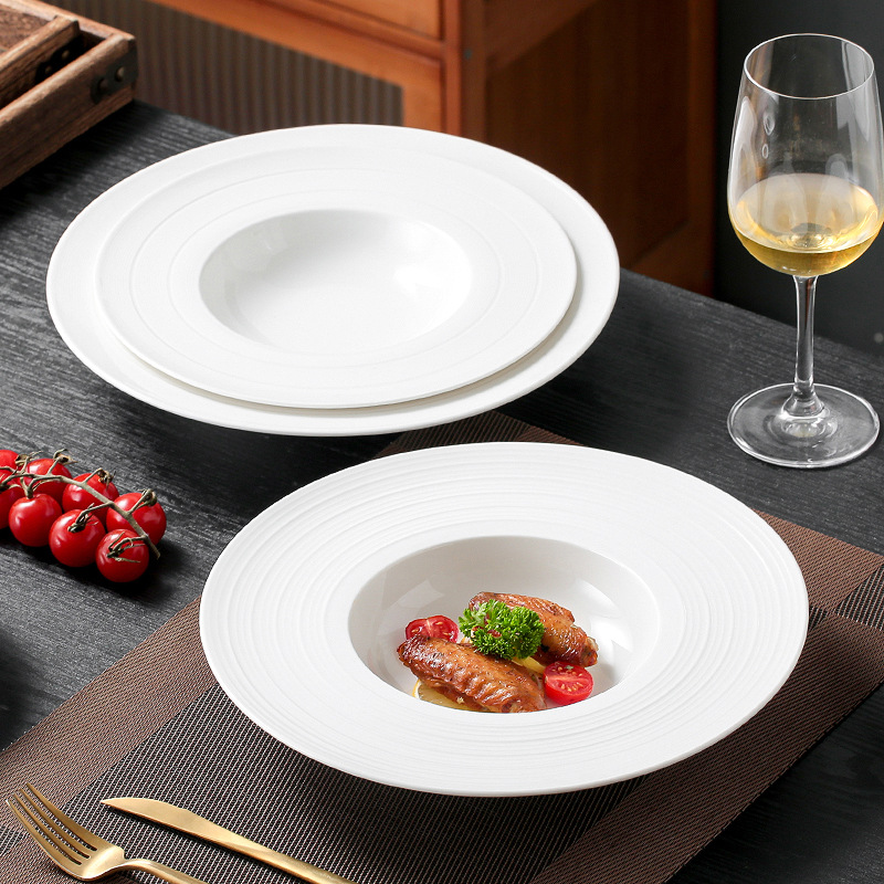 麦わら帽子皿陶磁器純白ねじ皿パスタ皿シンプルホテル洋食食器西洋風スープ皿深皿ボウル