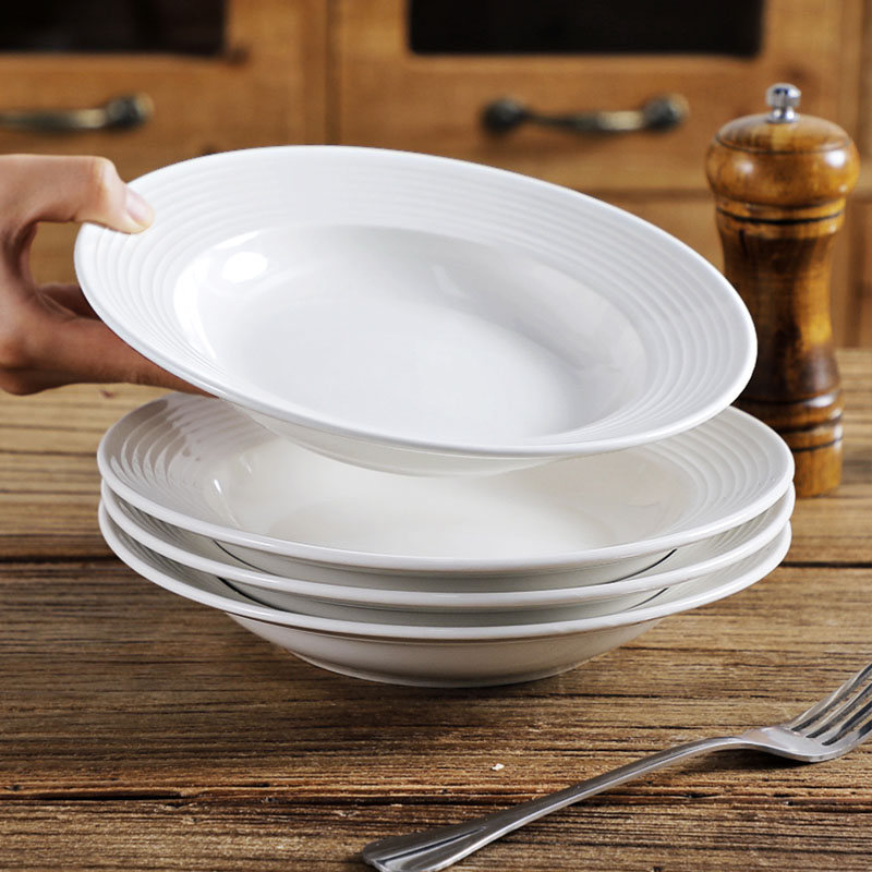 シンプルなネジ模様の陶器製草帽皿、大皿、パスタ皿、家庭用皿、サラダ皿、実用的な皿、食器卸売