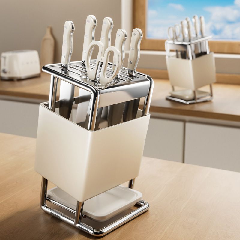 厨房台面旋转刀架多功能刀具沥水收纳架家用不锈钢一体刀座置物架