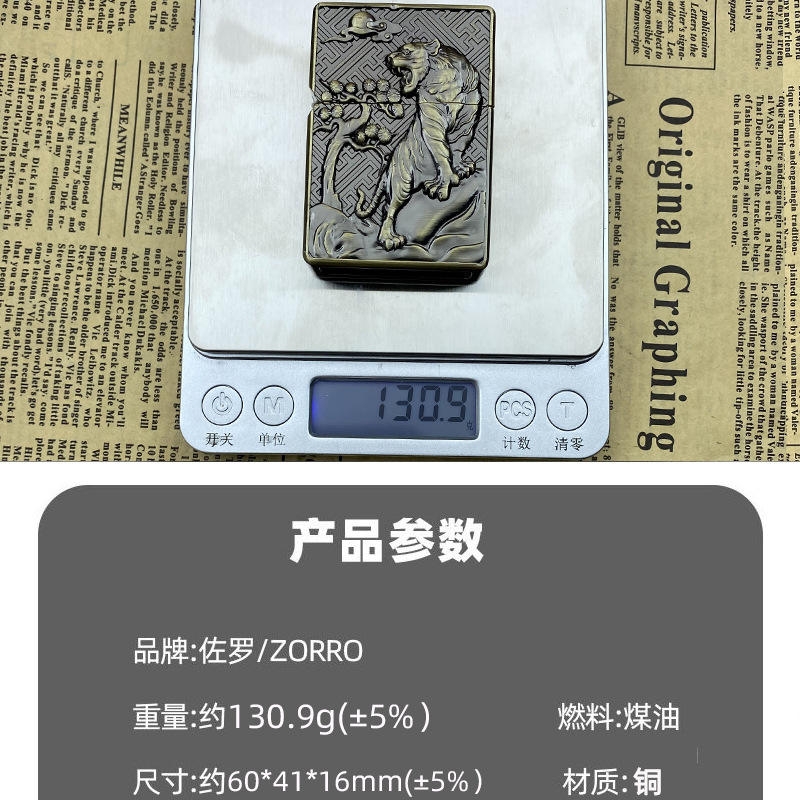 Zorro佐羅灯油ライターZ-KJ1018鎧上山虎真鍮旧式防風メーカー卸売り