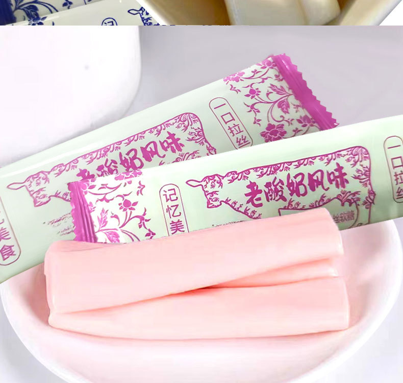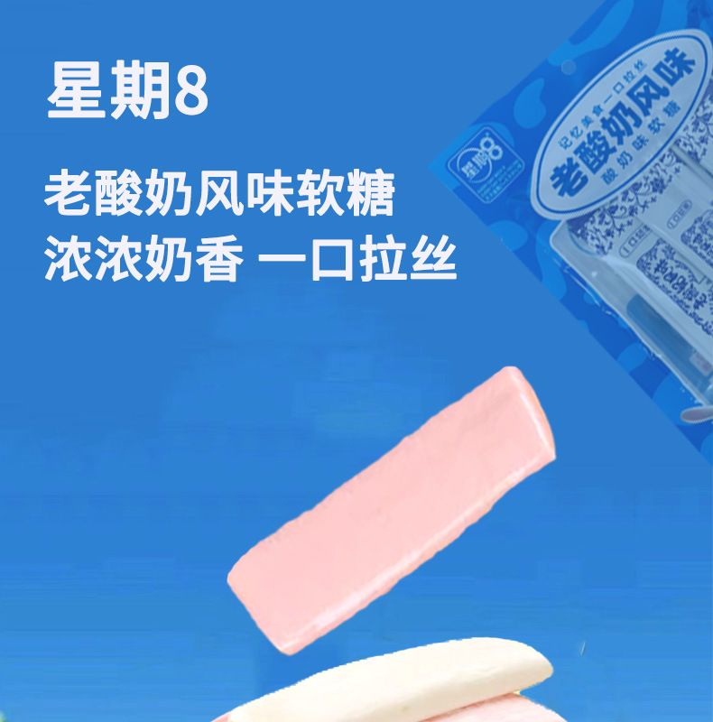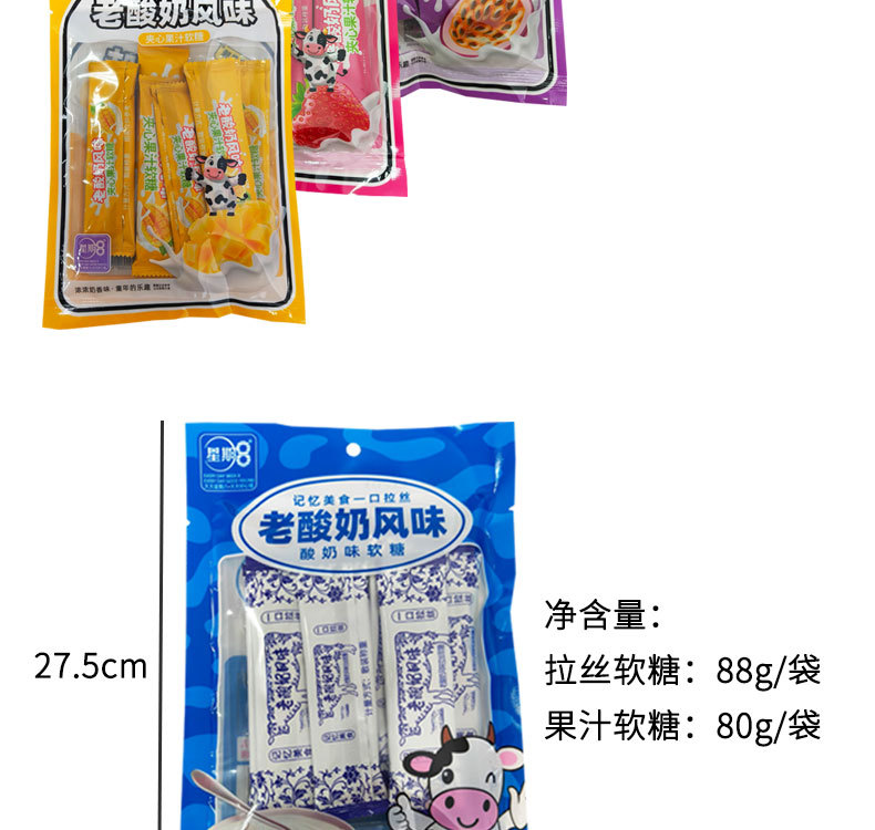 曜日8古いヨーグルト风味グミストレッチグミキャラメルサンドイッチジュースレトロソフトキャンディスナック卸売