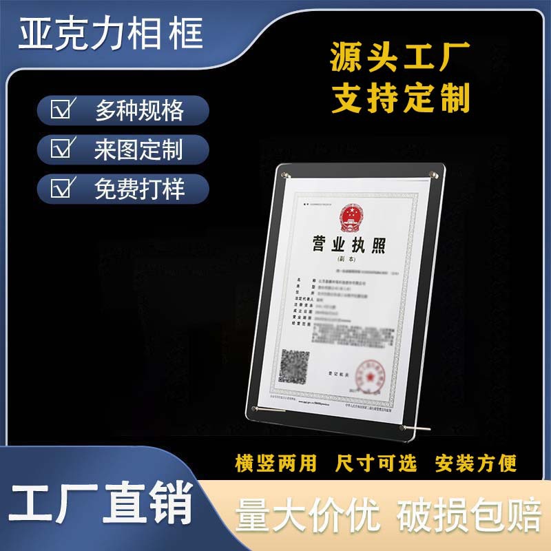 アクリル透明フォトフレーム置物名誉証明書営業執照枠写真水晶展示額縁a4