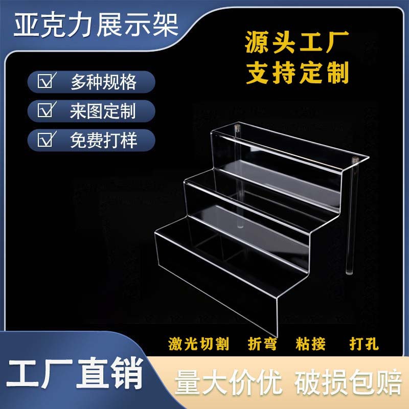 透明アクリル展示棚三層化粧品棚有機ガラス陳列棚生放送台形棚収納