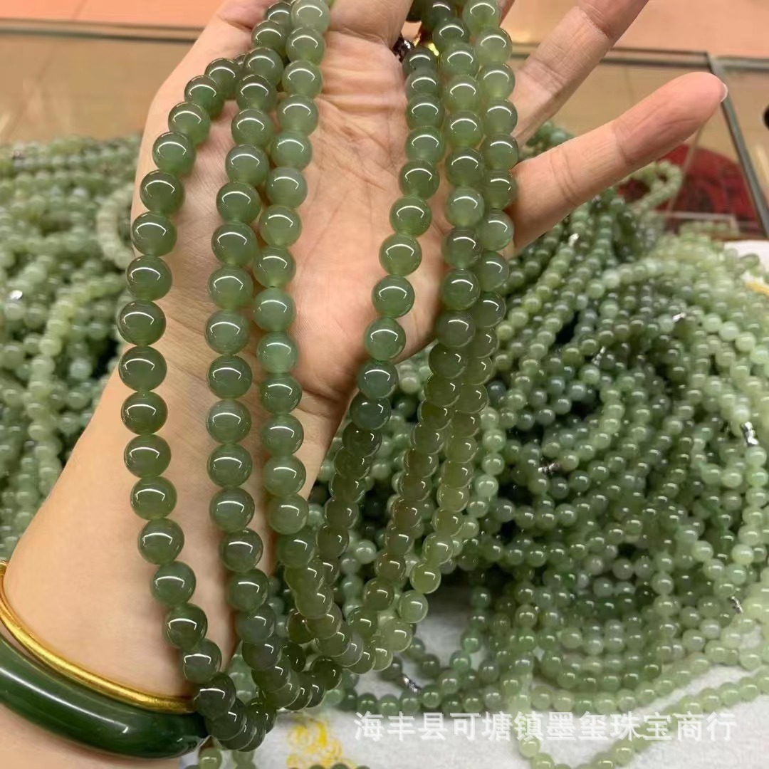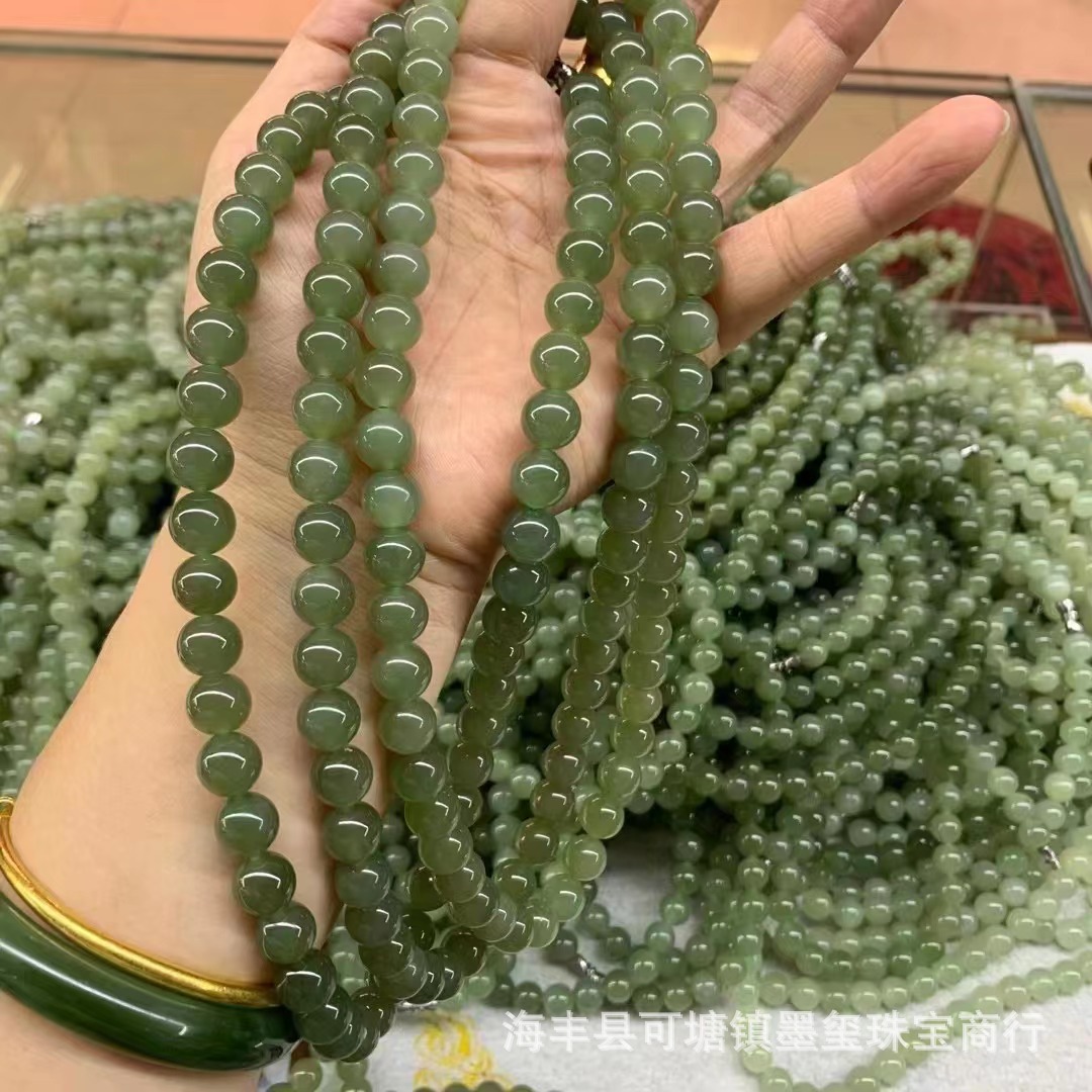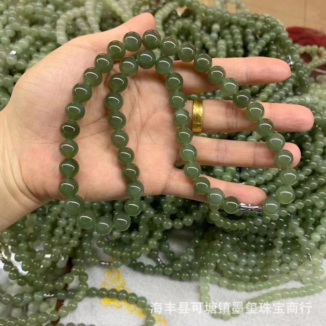 和田碧玉8mネックレス水頭足無黒diy陽緑円珠ストラップ散珠手串アクセサリー卸売り工場
