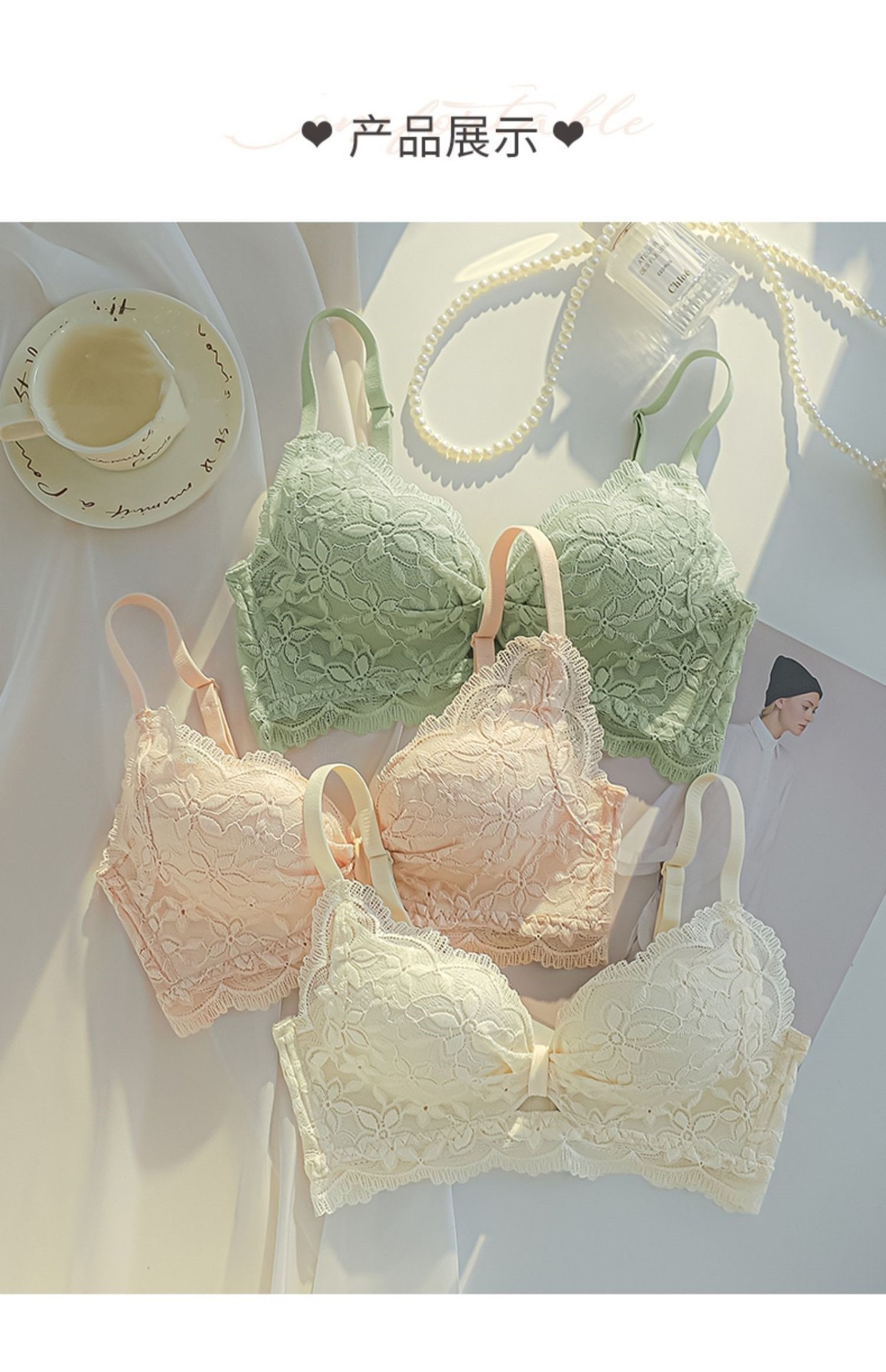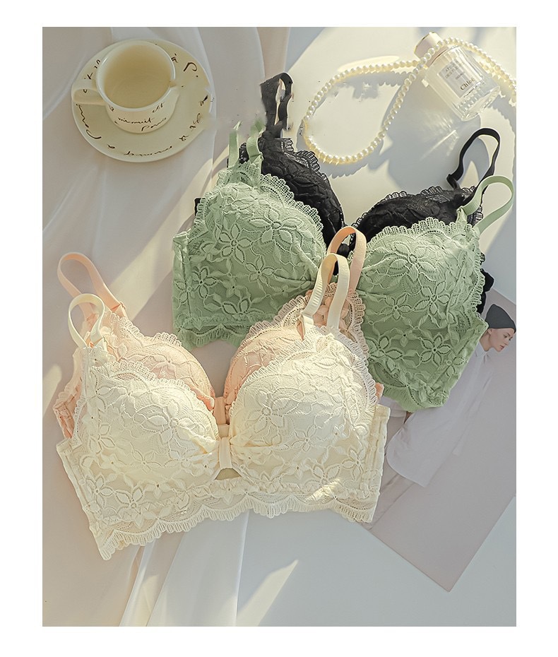 温柔提花碎花奶油舒芙蕾内衣女无钢圈小胸聚拢防垂收副乳透气文胸