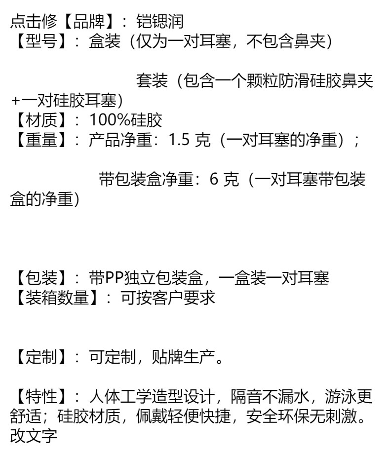 椭圆盒方盒泳镜配件鼻夹耳塞套装硅胶成人防水游泳用品子弹款耳塞