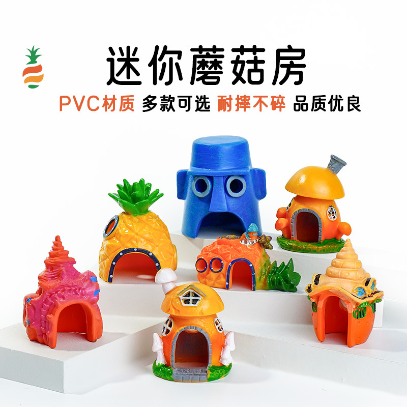 クロスボーダーパイナップルハウス水槽造園フルパッケージ人形装飾品シェルターハウススポンジボブ小さな家の装飾セット