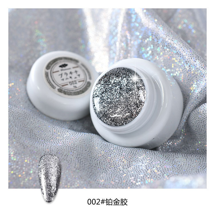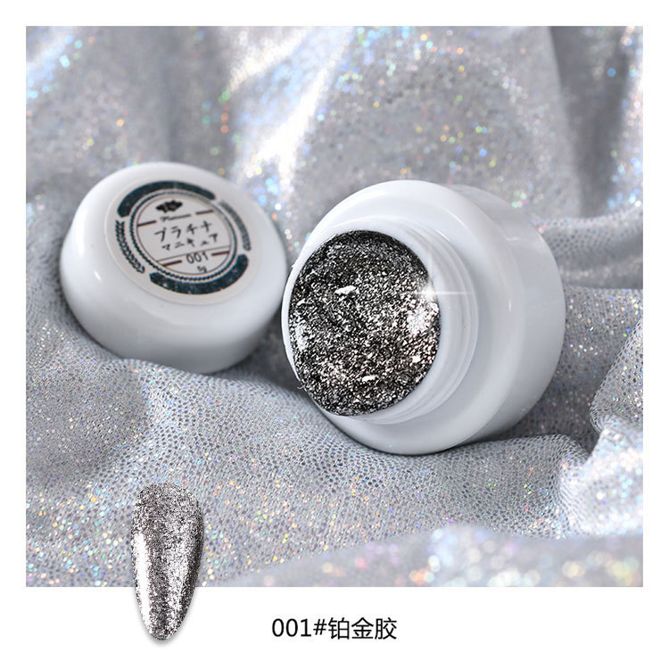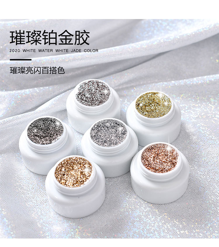 エニーの詩の金属の高密度のプラチナのゴムの秋冬の新型の爆発的なスパンコールのマニキュアのゴムは線の光を引いてゴムを治療します。