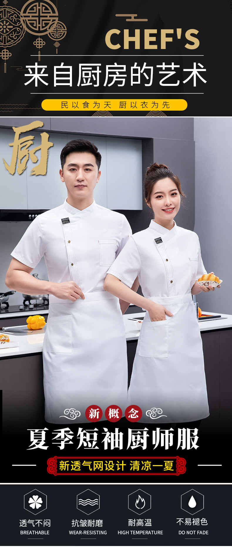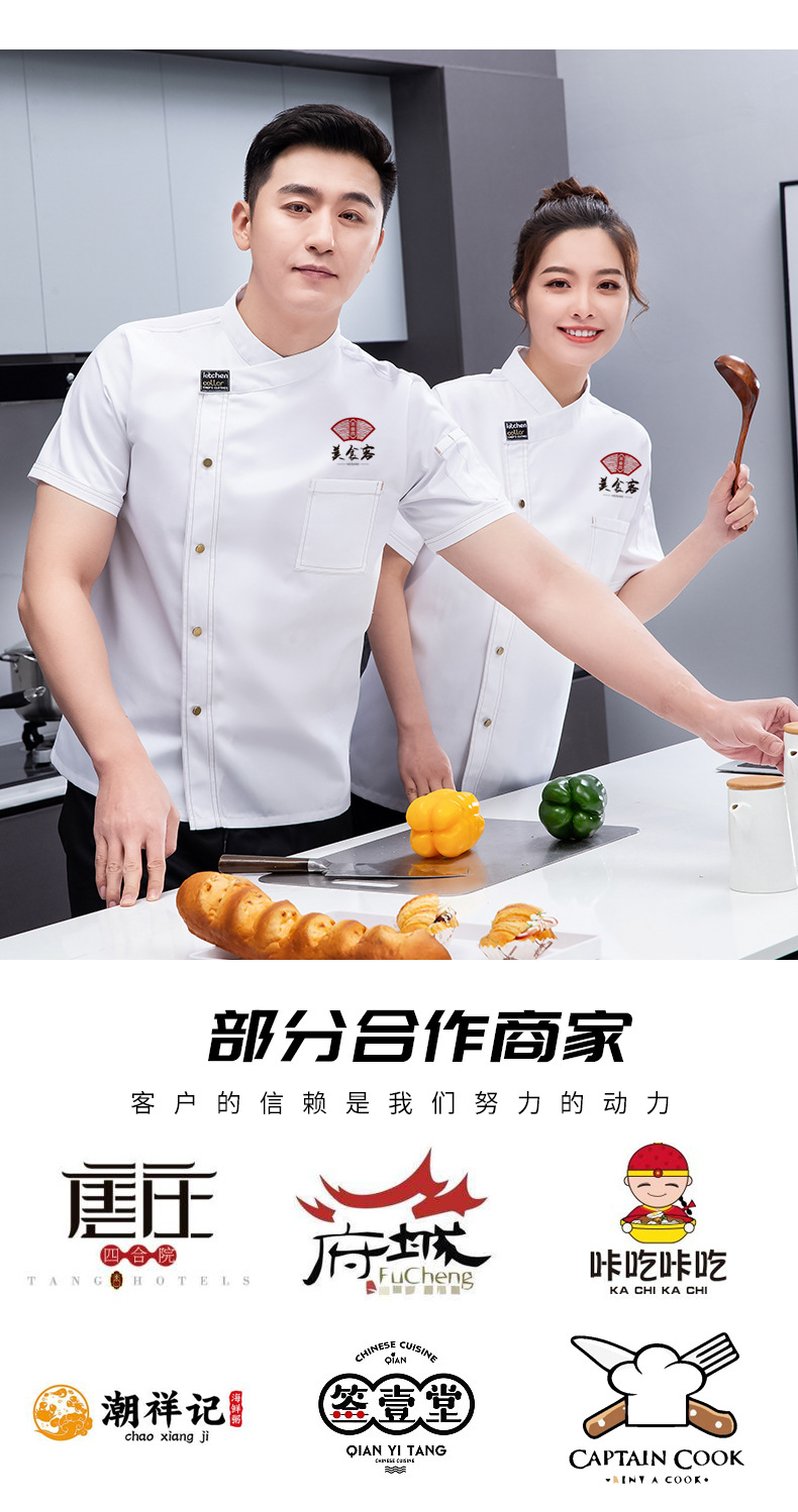 シェフ作業服半袖男性夏ホテルレストラン食堂後キッチンポリエステル綿通気性薄い女性上着
