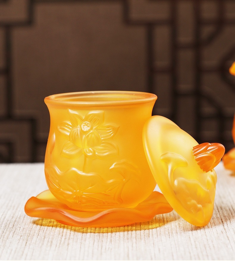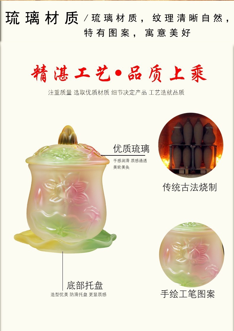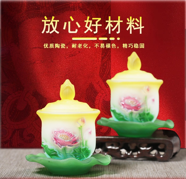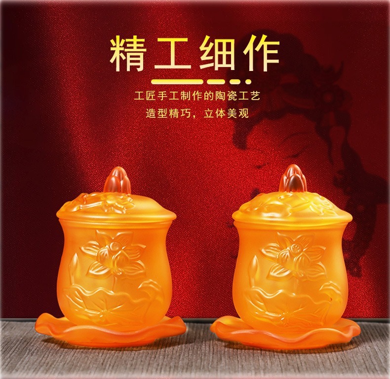浮き彫り瑠璃蓮花給水杯聖水杯家庭用財神観音浄水杯お供え杯仏堂仏前お供え杯