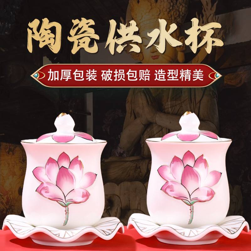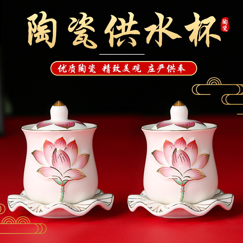陶瓷供杯家用上供莲花净水杯菩萨供佛杯观音圣水杯贡杯供水的杯子