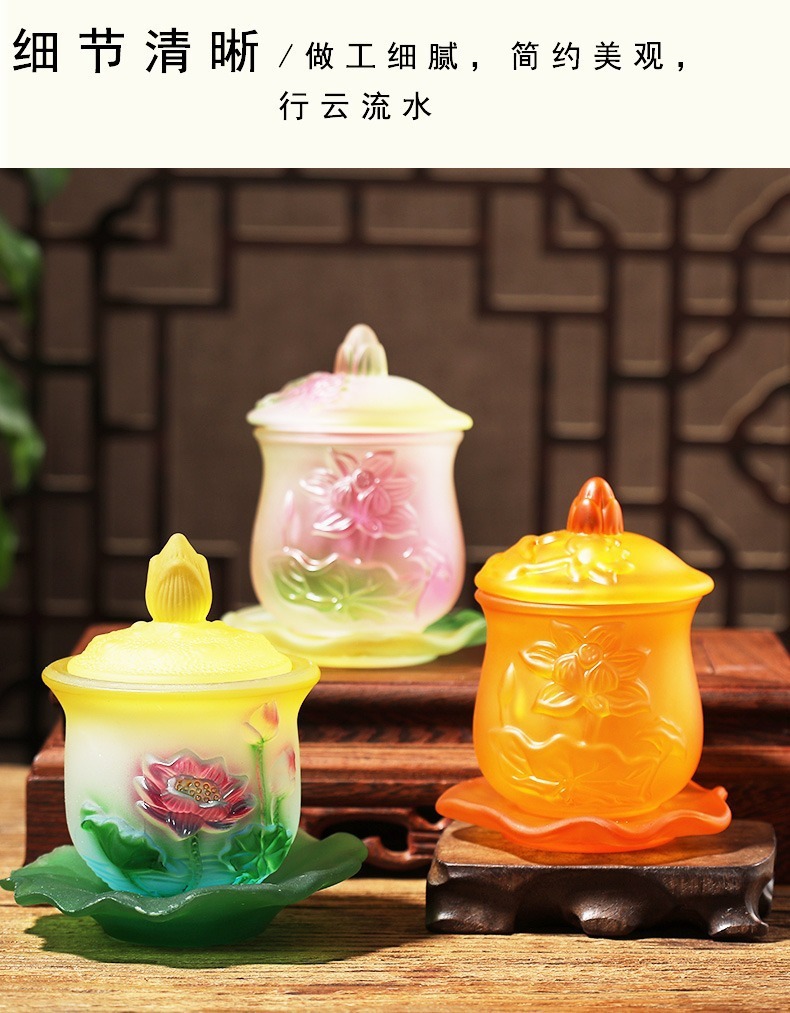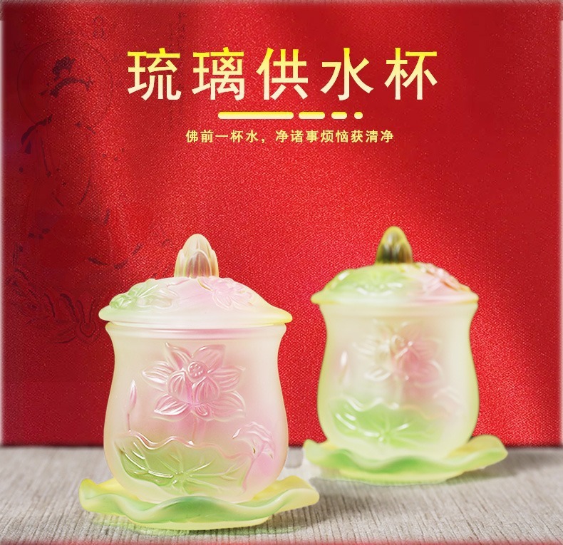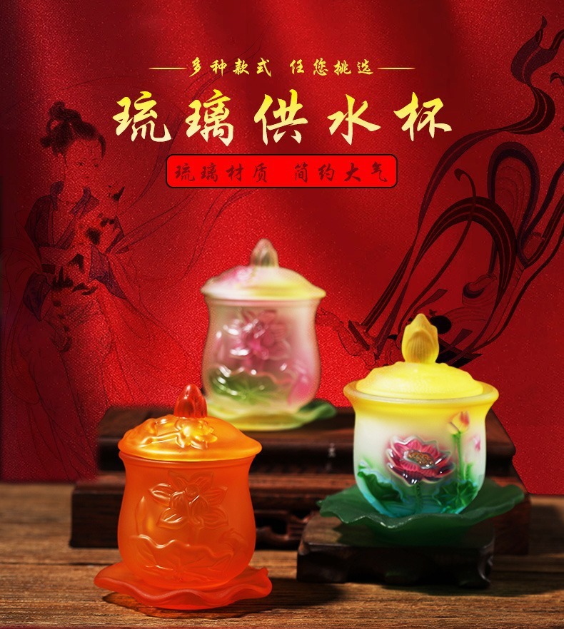 瑠璃供杯家庭用貢杯仏前給水杯仏堂供仏杯蓮花浄水杯聖杯置物