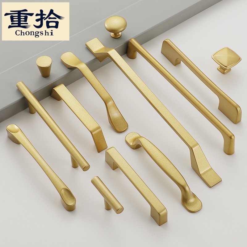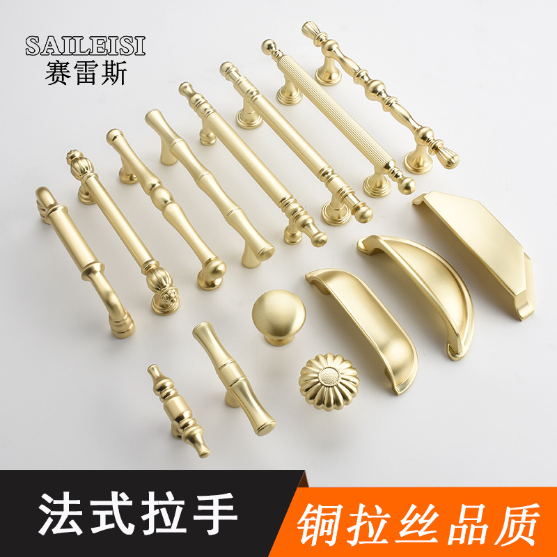 法式金色铜拉丝衣柜拉手 北欧抽屉橱柜鞋柜门 轻奢实心简约把手