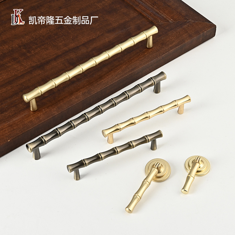 黄铜古铜色竹节衣柜门拉手现代北欧轻奢简约北欧抽屉橱柜酒柜把手
