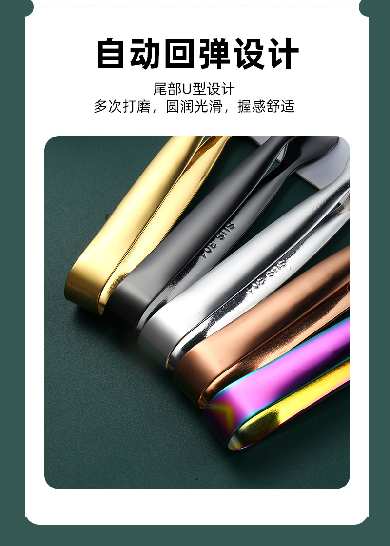 304不锈钢冰夹圆头方糖夹多功能面包夹无毛刺食品夹防滑防滑设计