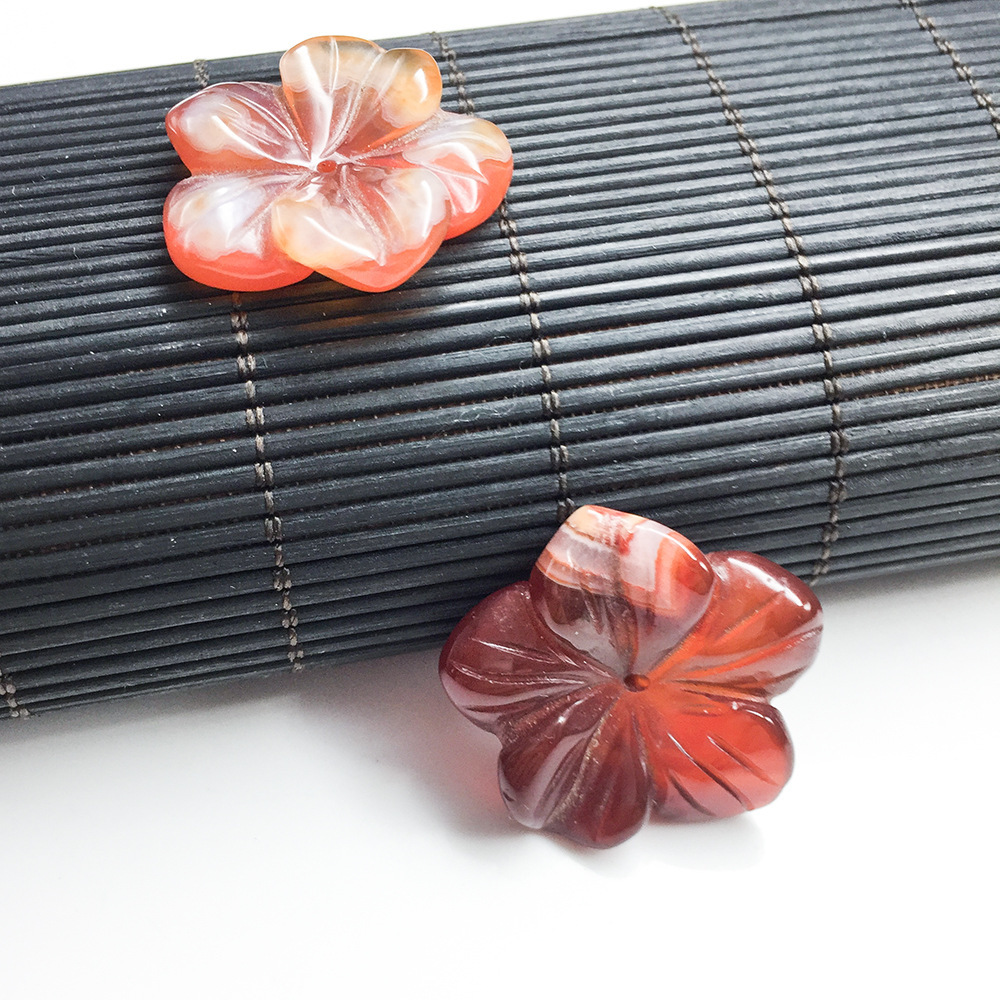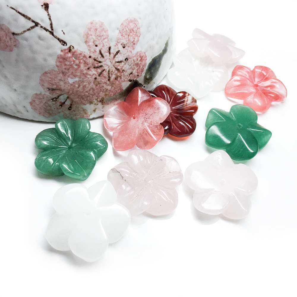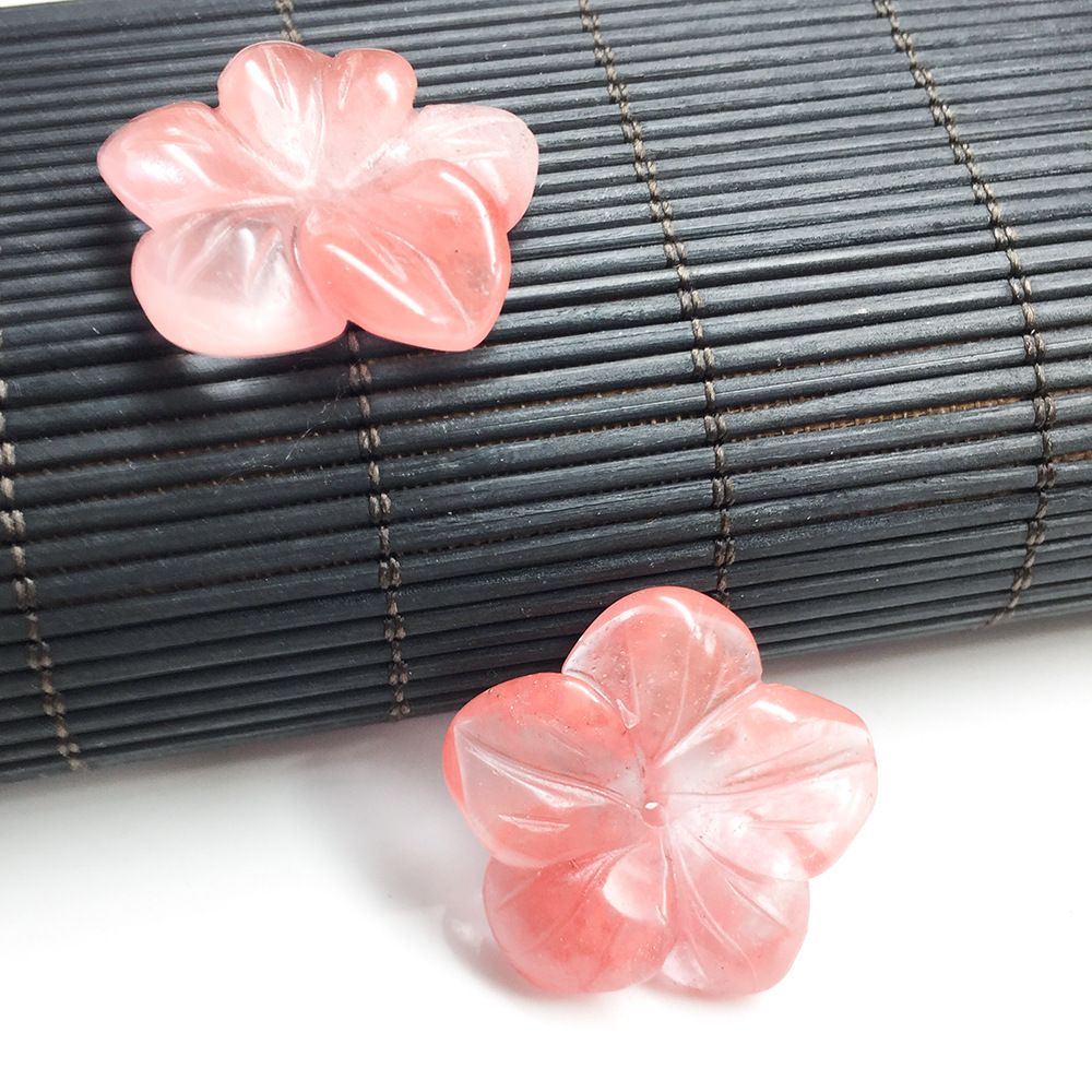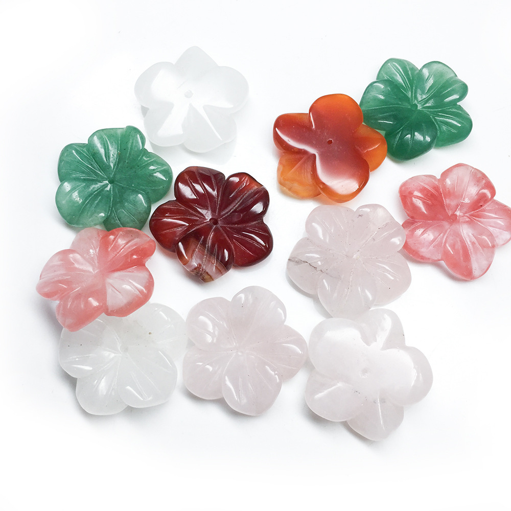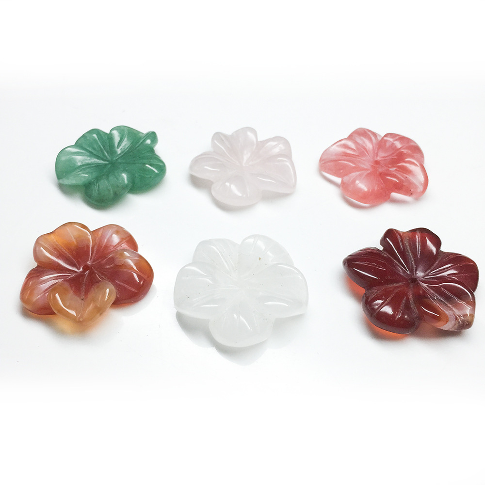 粉晶東陵玉漢白玉五弁花天然水晶宝石彫刻花diyアクセサリー部品卸売り