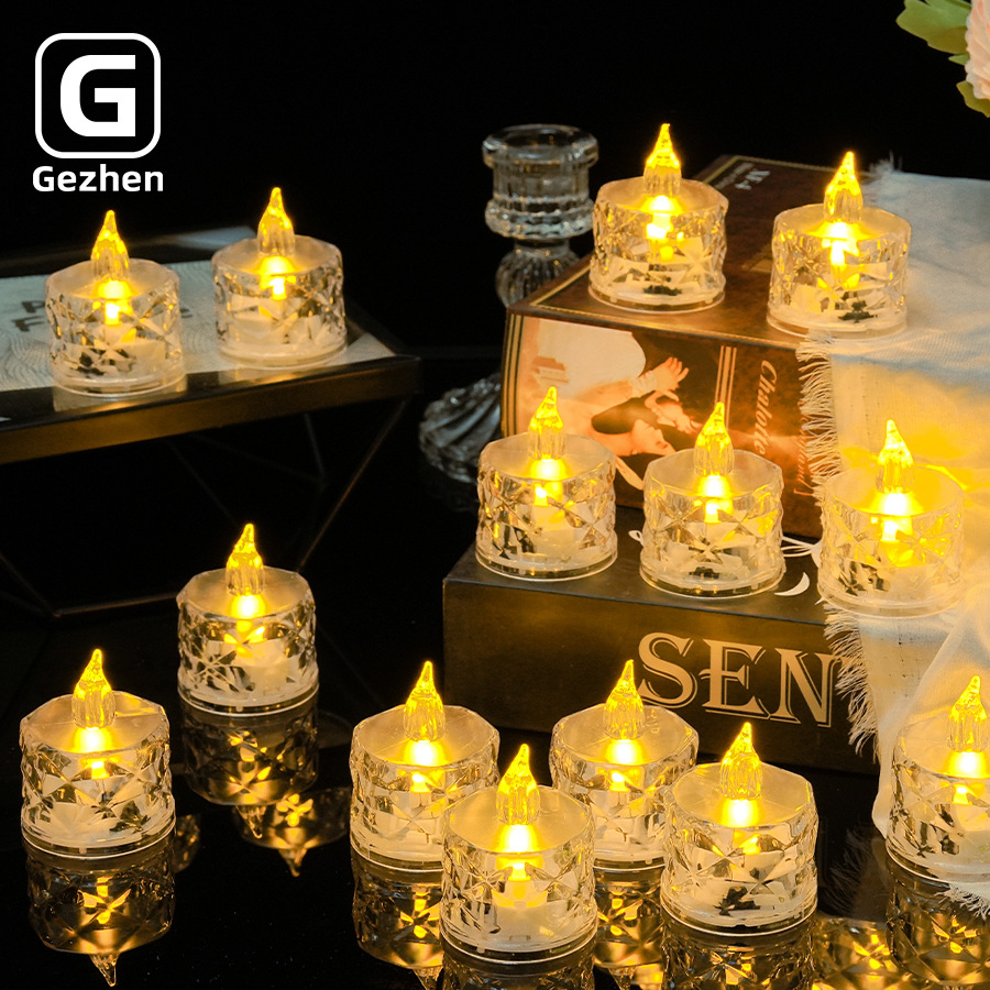 led电子蜡烛灯ins玫瑰茶蜡透明水晶小夜灯求婚氛围灯LED电子蜡烛