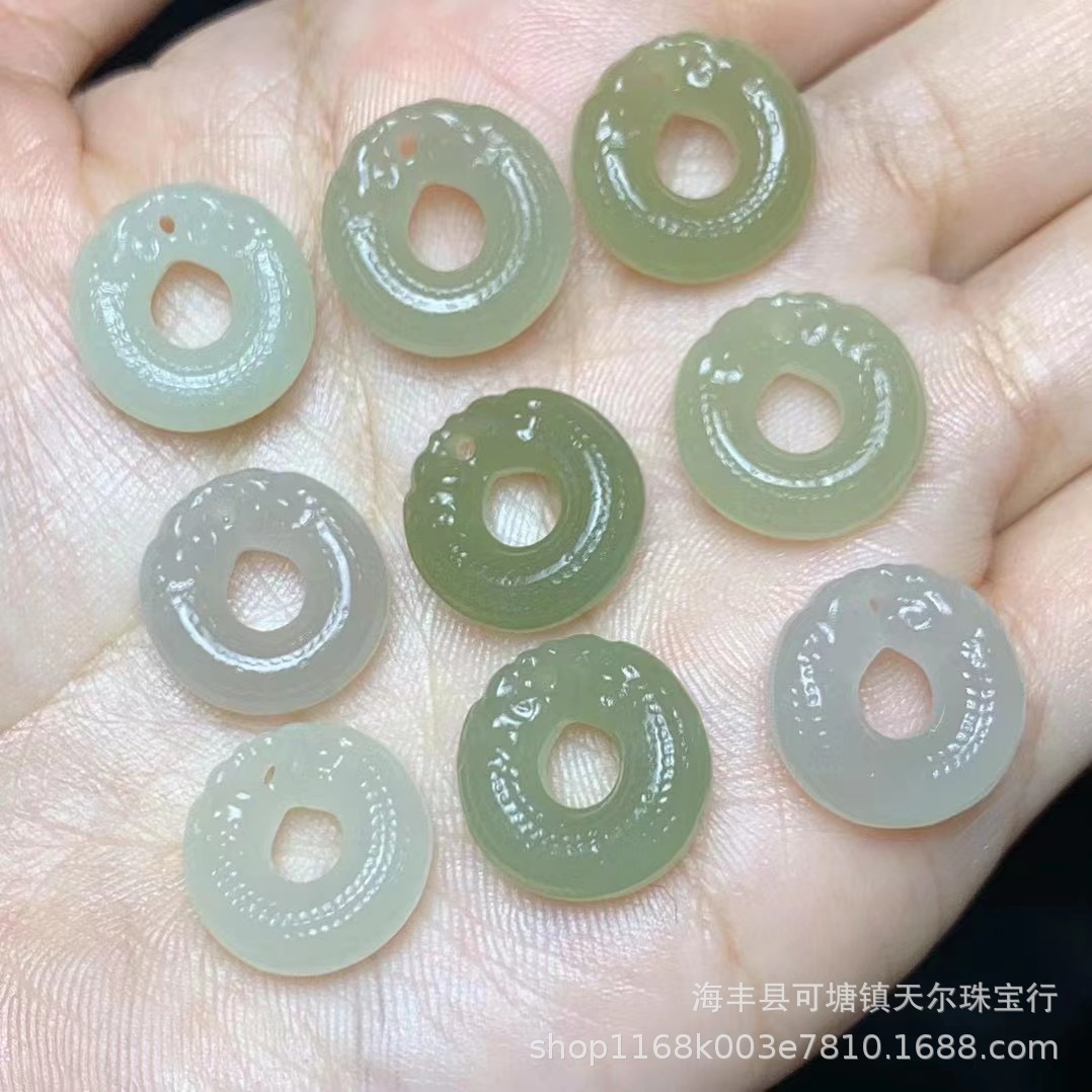 和田玉碧玉青海材料ペンダント双龍ボタンdiy部品小提溜ストラップ玉アクセサリー卸売り