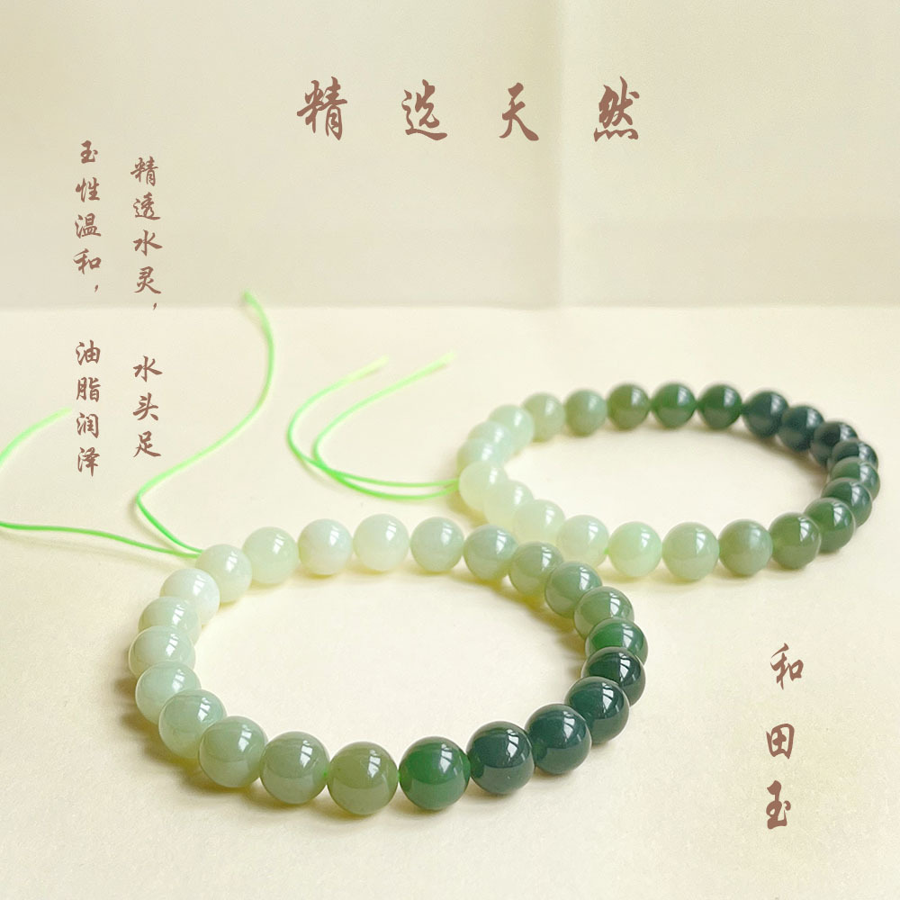 天然和田玉手串グラデーションブレスレット玉と田玉白玉晴水ビーズ白玉ブレスレット卸売り