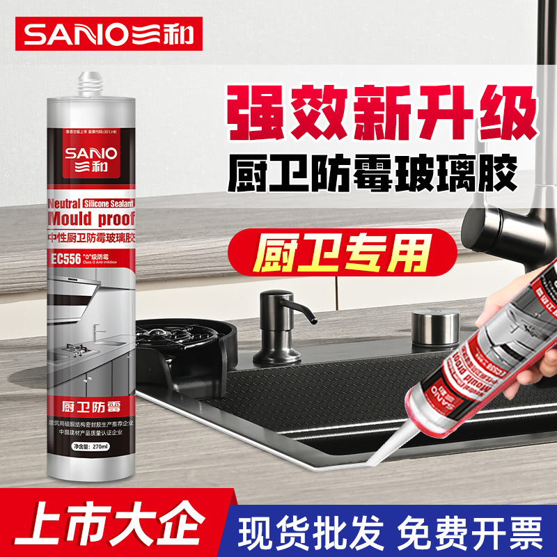 三和中性防水防かびガラス剤キッチン専用シール剤白色透明シリコーン耐候性構造白接着剤