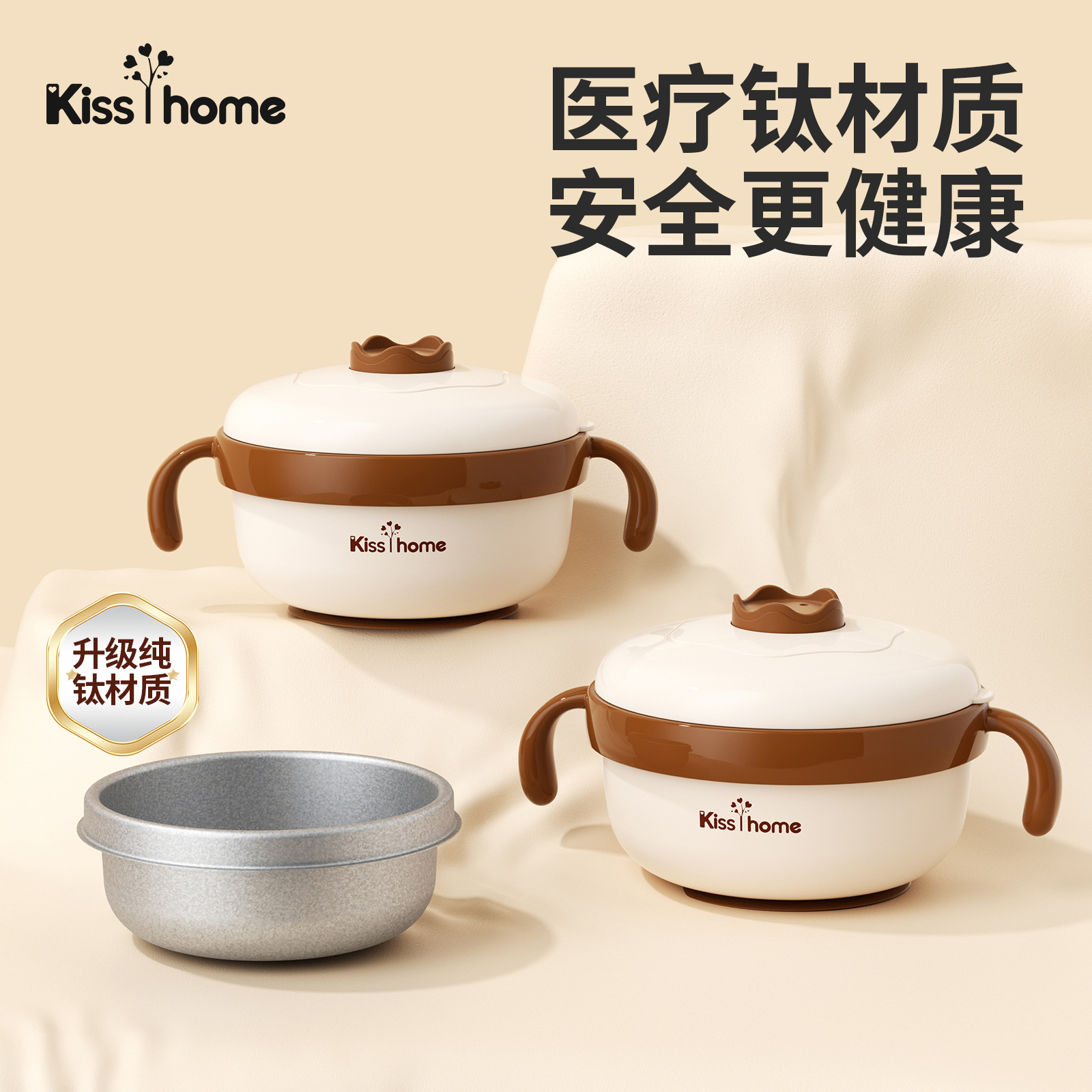 纯钛内胆宝宝辅食碗注水保温碗PPSU内胆带吸盘吃饭套装儿童餐具喂