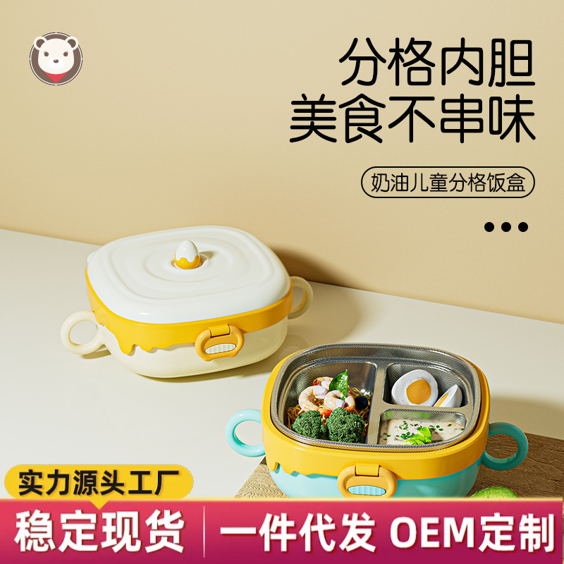 電子レンジ対応の子供用クロスボーダーランチボックス、フォークとスプーン付きプラスチック製、ソースボックス付き、臭いが混ざらない仕切り付き、家庭用弁当箱