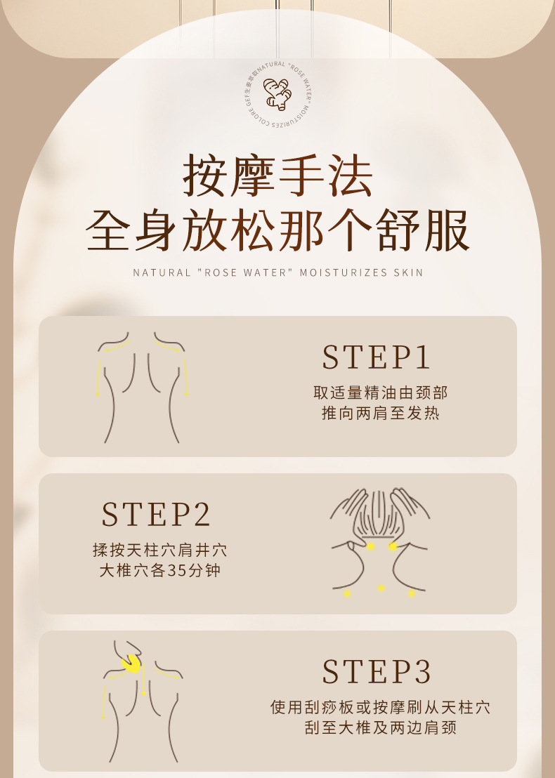 薔薇艾草生姜マッサージ精油卸売り美容院線全身掻爬発熱活絡体植物精油