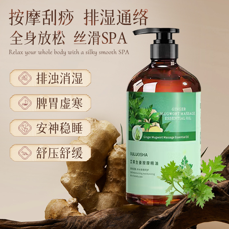 艾草生姜l按摩精油身体按摩油大容量精油现货工厂批发500ml