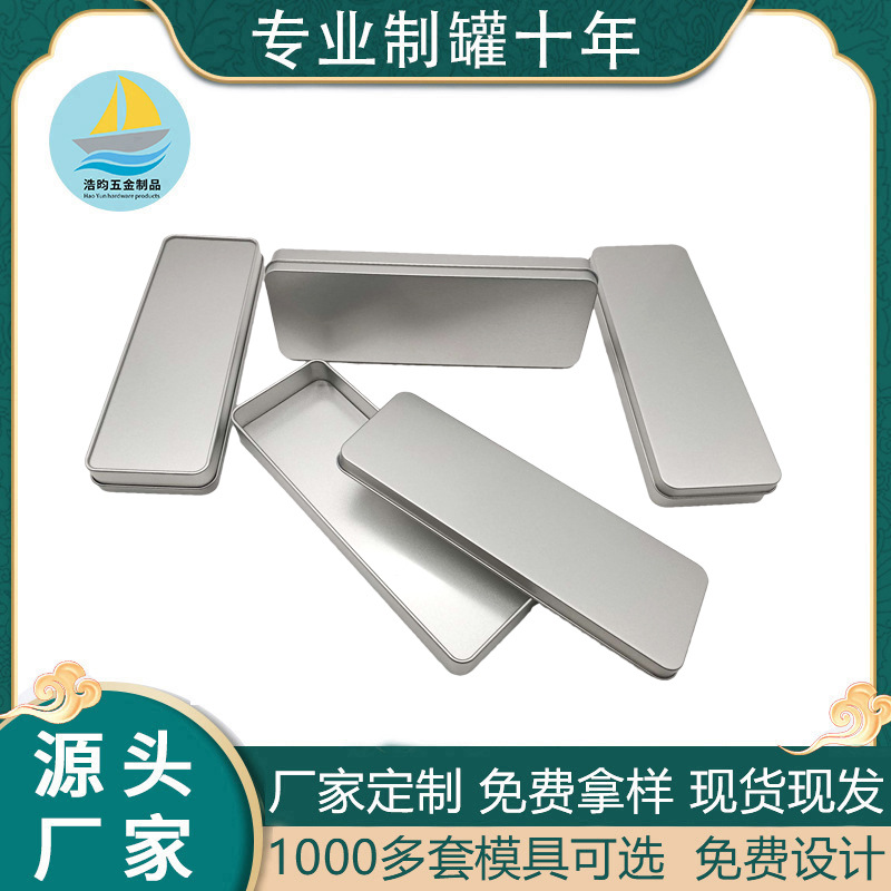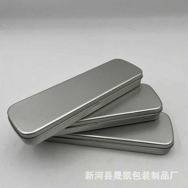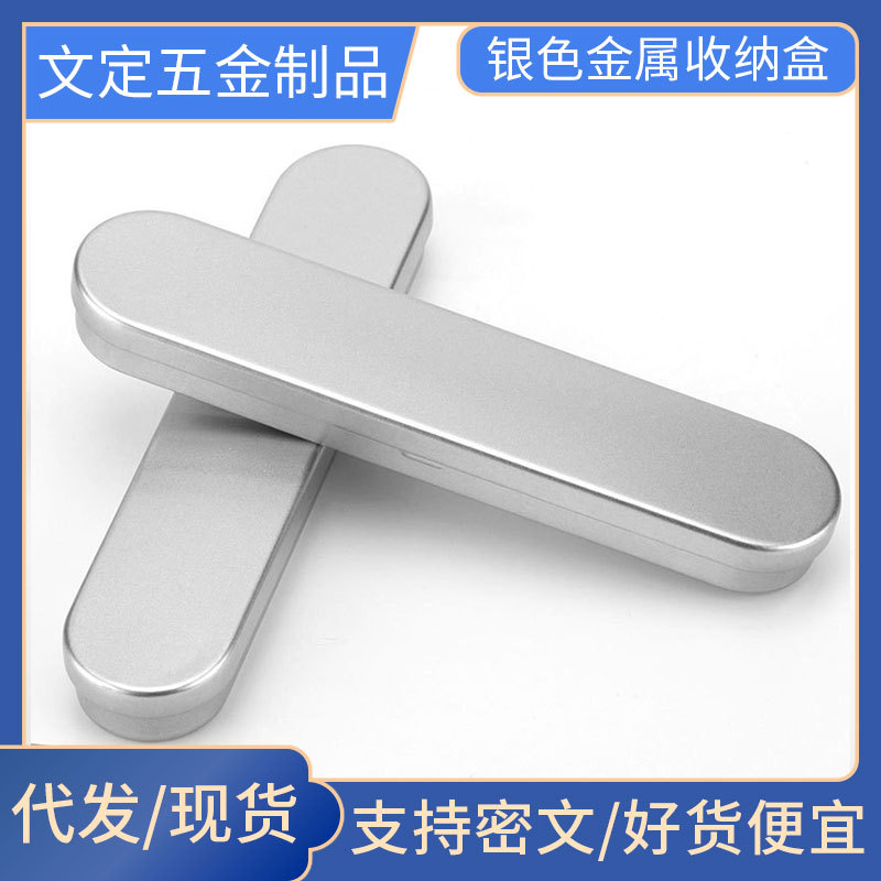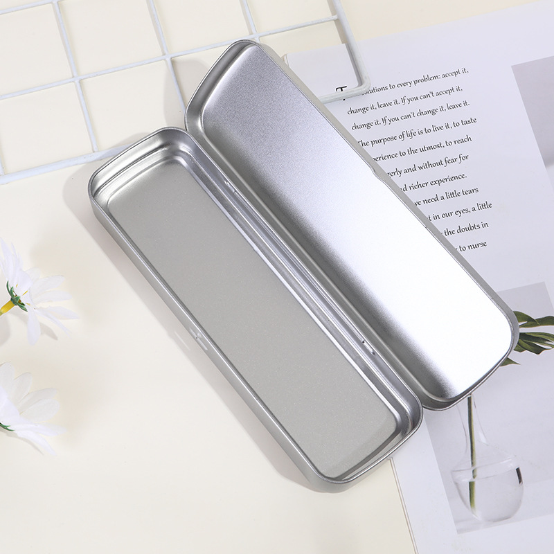 現品の粉刺針の大きい文房具の箱のブリキの包装の金属のペンの箱の長方形のギフトの箱の銀色の収納の箱