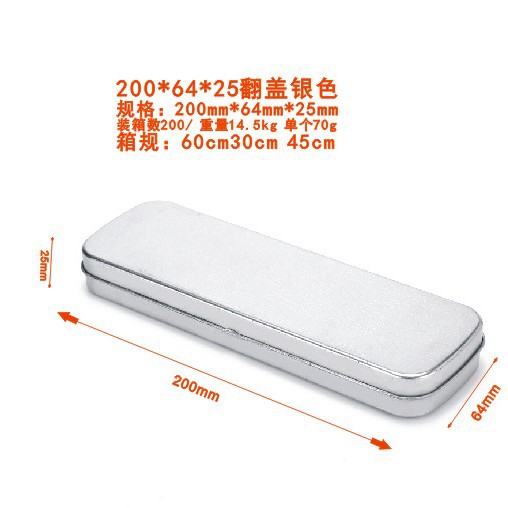 現物供給ブリキケース200*66*23mmカバーペン文房具包装長方形収納ケース卸売り