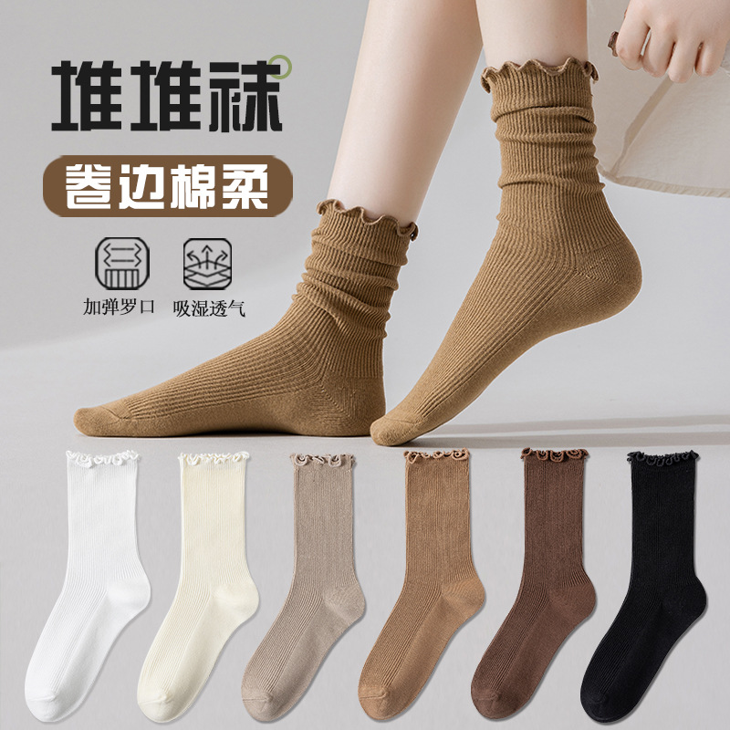 靴下の女性の秋冬の木の耳の辺は靴下の美ラードの潮流の筒の女性の綿の靴下の純色の百合の双針の女性を積みます。