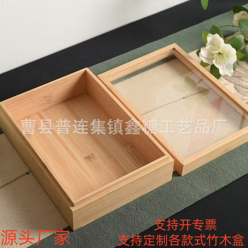 天地蓋竹木包装箱透明蓋木箱ガラス蓋伴手礼箱多目的収納竹箱実木箱