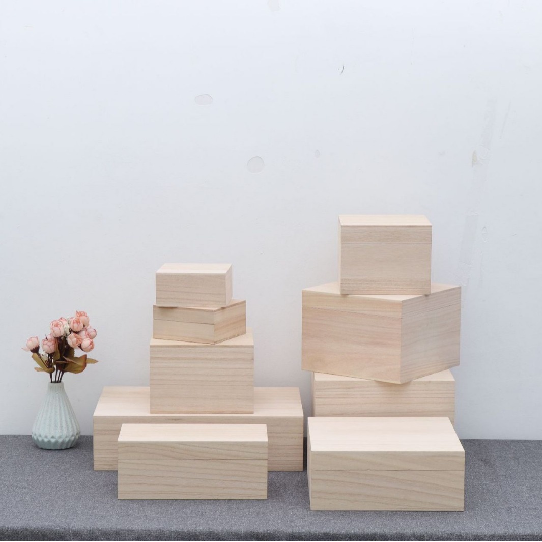 シンプル多目的天地蓋木箱桐木正方形木箱収納箱包装ギフトボックスロゴ